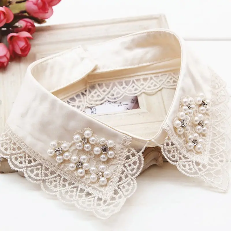 Женская Съемная рубашка Colla, накладные воротники, жемчужные кружевные украшения, Дамские кружевные накладные ожерелья, модные аксессуары для одежды