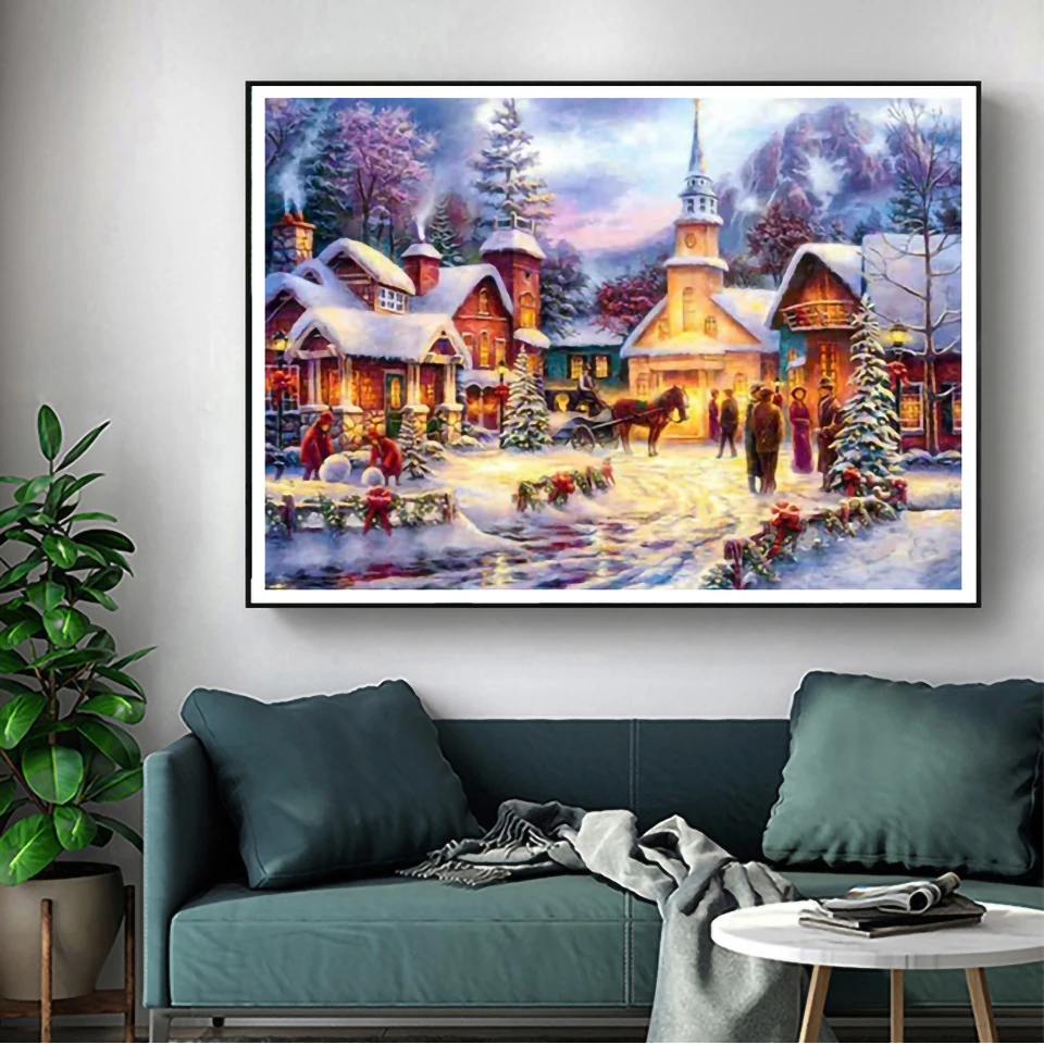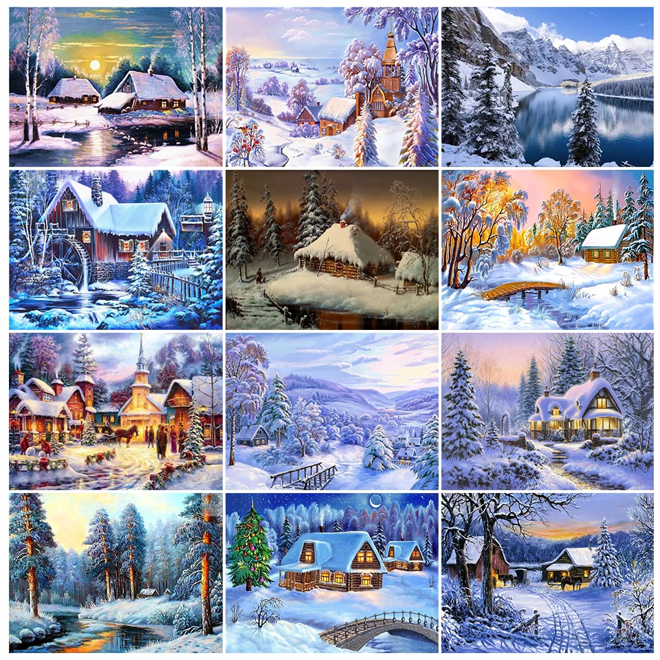Алмазная 5D картина сделай сам, пейзаж, зимний дом, полный квадратный стразы, Набор для вышивки крестиком, мозаика, картина, украшение, подарок