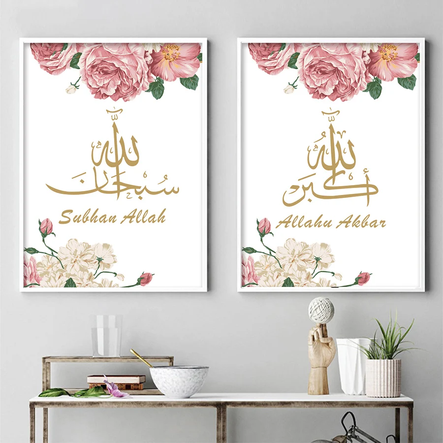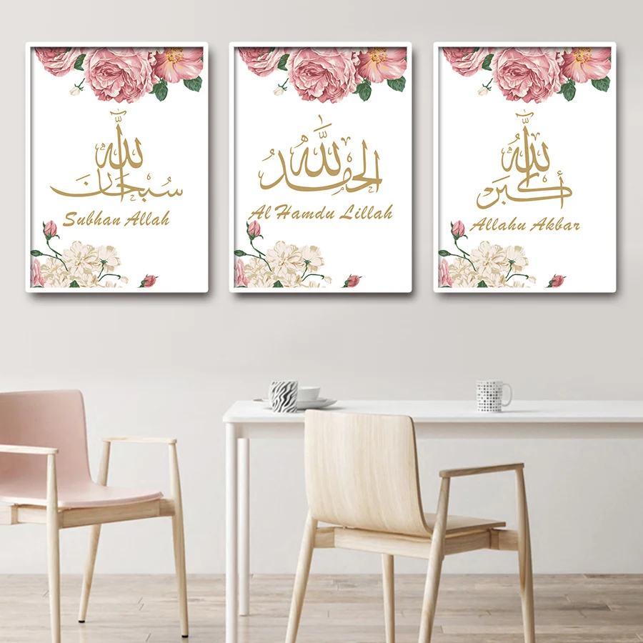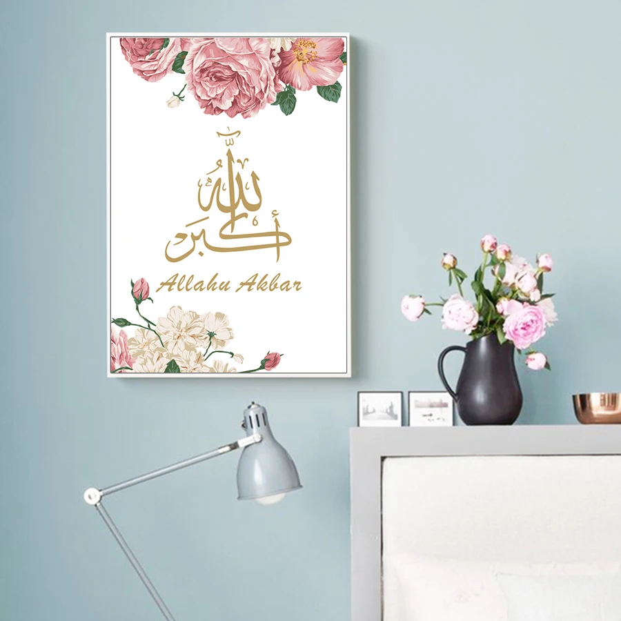 Настенная картина, искусство, холст, декорации, розовый цветок, плакат и принты, мусульманская Настенная картина для дома, гостиной