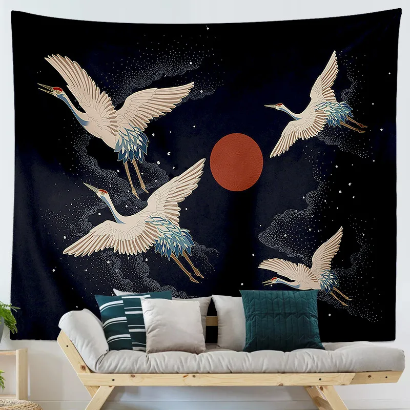 Японский миф, гобелен в стиле хиппи, настенный Настенный Ковер Geisha Crane, психоделический гобелен, эстетический декор комнаты, Настенная роспись для дома, спальни