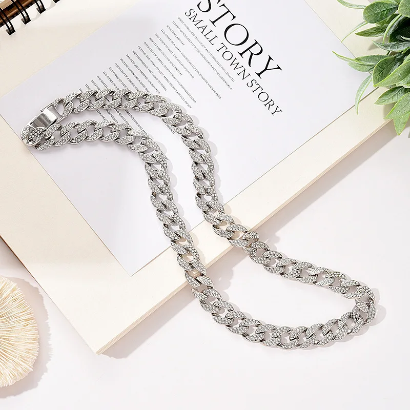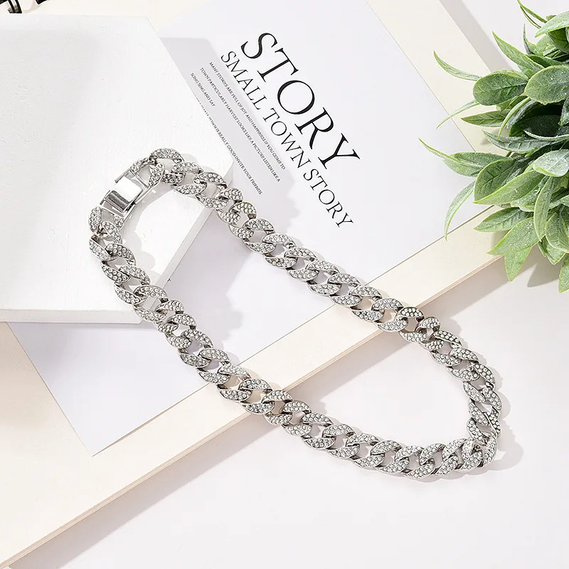 Ожерелье с кубинским звеном, в европейском и американском стиле, яркие аксессуары в стиле хип-хоп, ювелирные изделия с кристаллами, цепочка на шею для мужчин