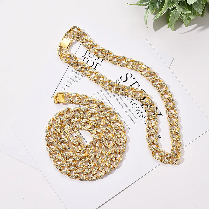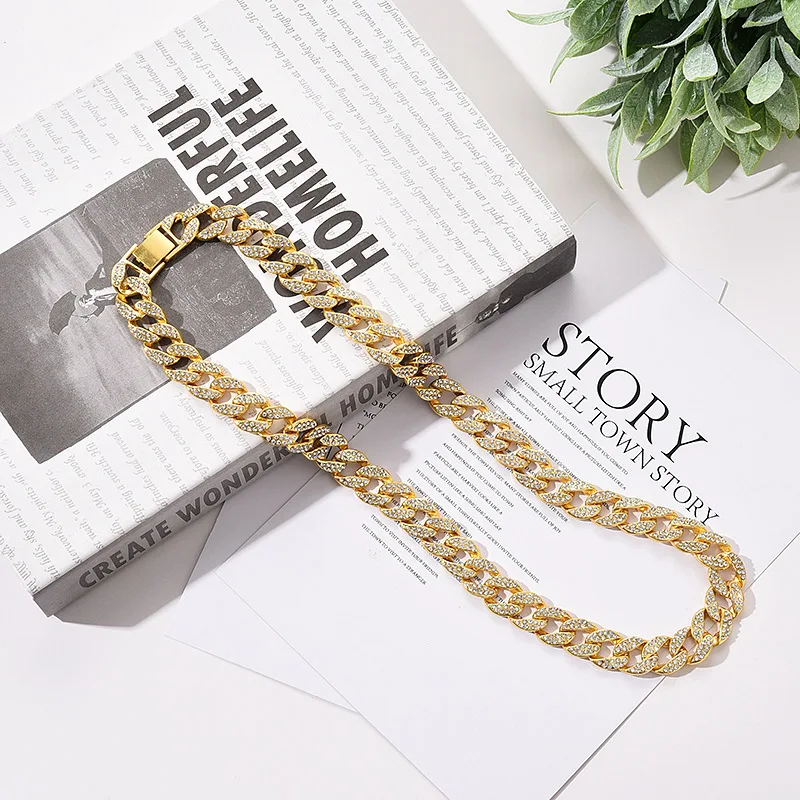 В европейском и американском стиле цепочка на шею для мужчин, массивные аксессуары в стиле хип-хоп, кубинские звенья, ожерелье с кристаллами, оптовая продажа ювелирных изделий
