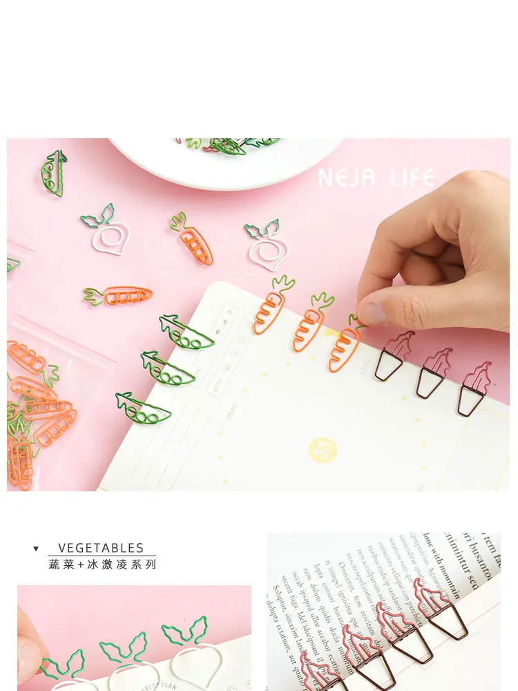 10 шт.компл. с сердечком Металл Овощной Футболка с принтом мороженого Бумага Клип Закладка для книги журнал Тетрадь Дневник Студент, школа, офис бумага для писем подарок