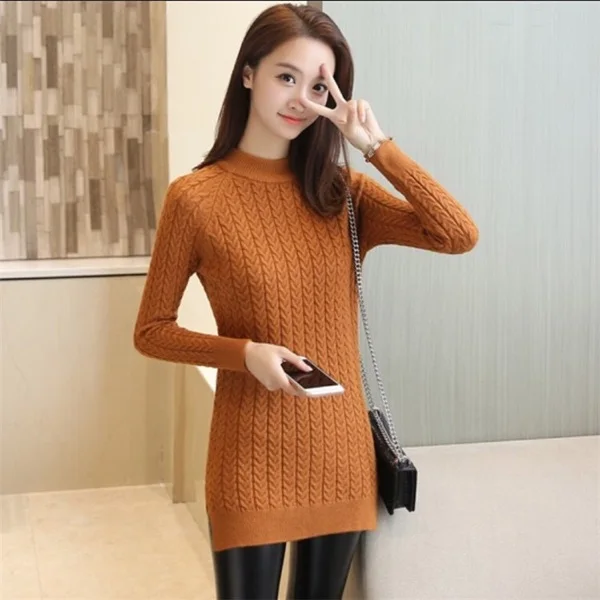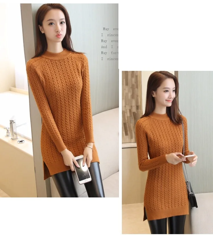 Осенний пуловер свитер женский весенний новый корейский свободный свитер Ma Hua нижняя рубашка средней длины с разрезом Тонкий вязаный свитер платье для женщин