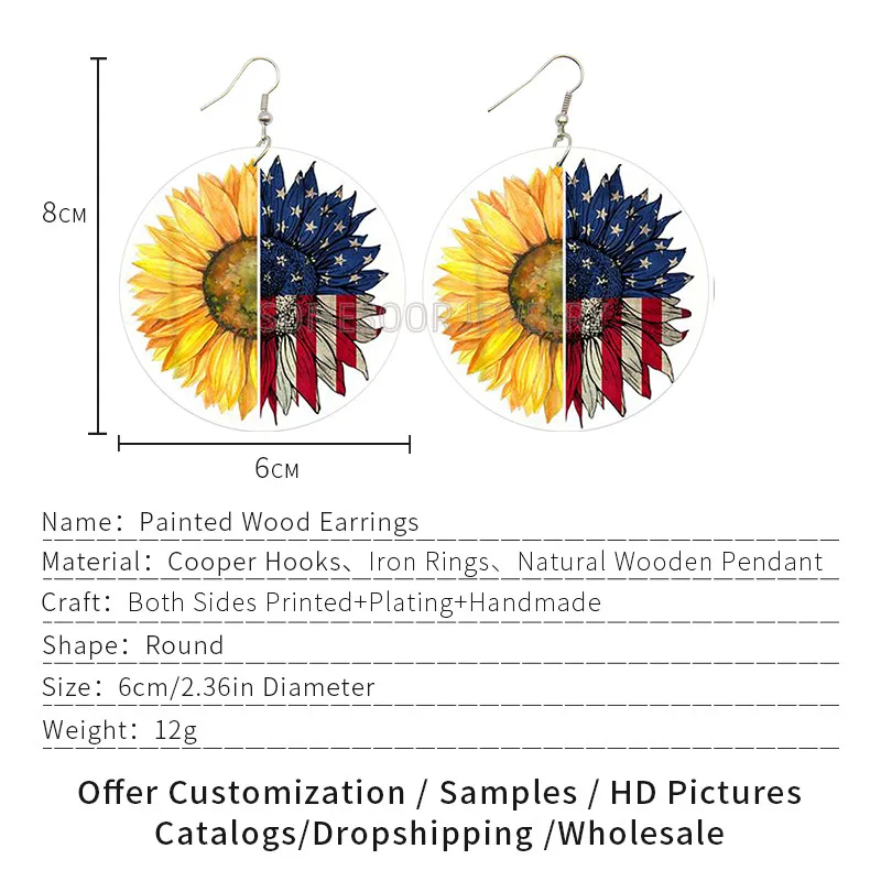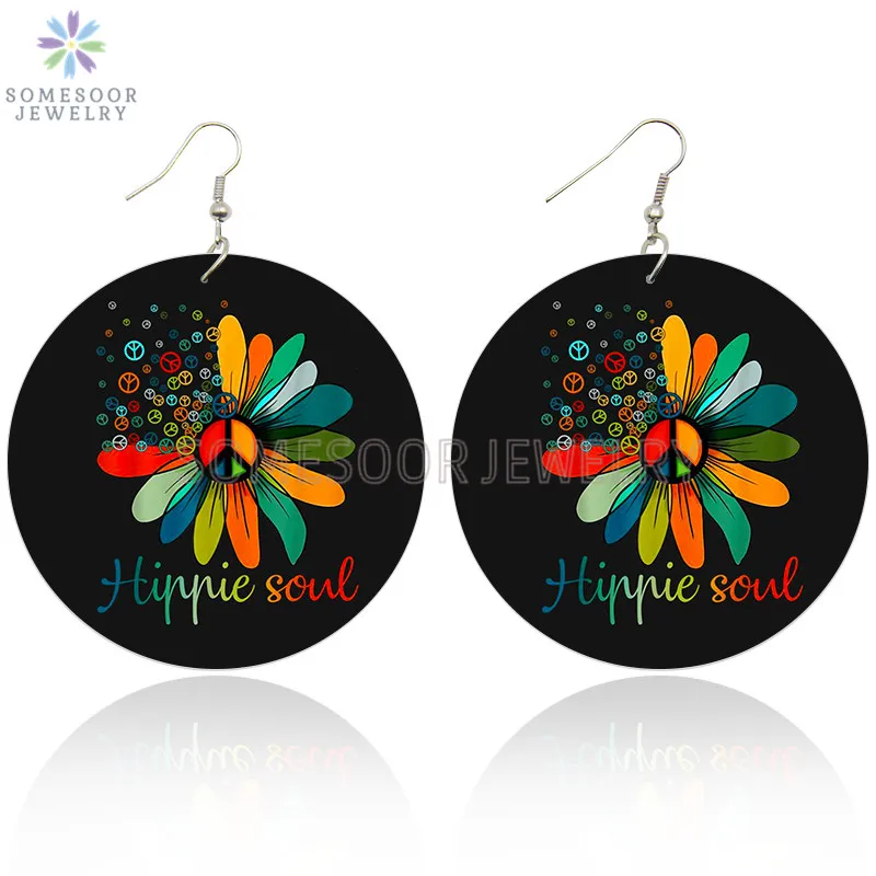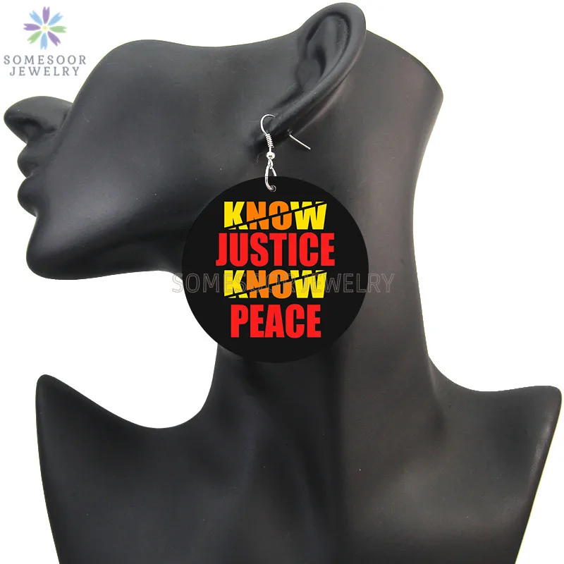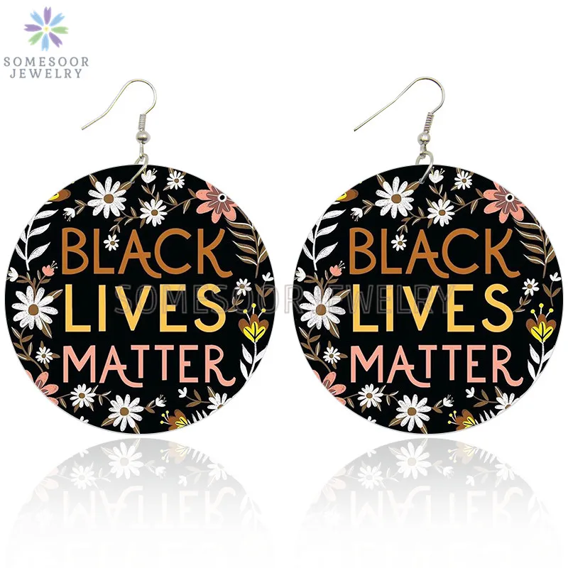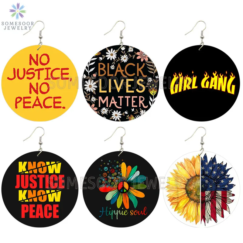 SOMESOOR мир справедливость душа напечатанные деревянные висячие серьги черные жизни материя девушка Группа Американский подсолнух Дизайн Висячие ювелирные изделия