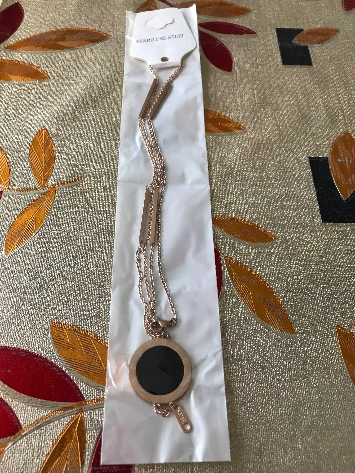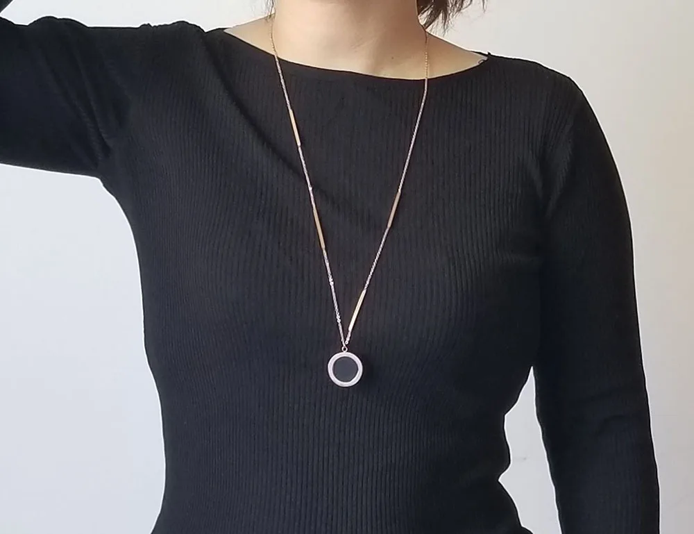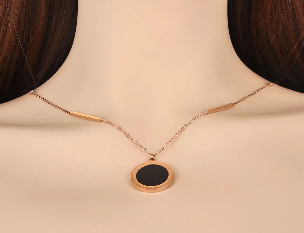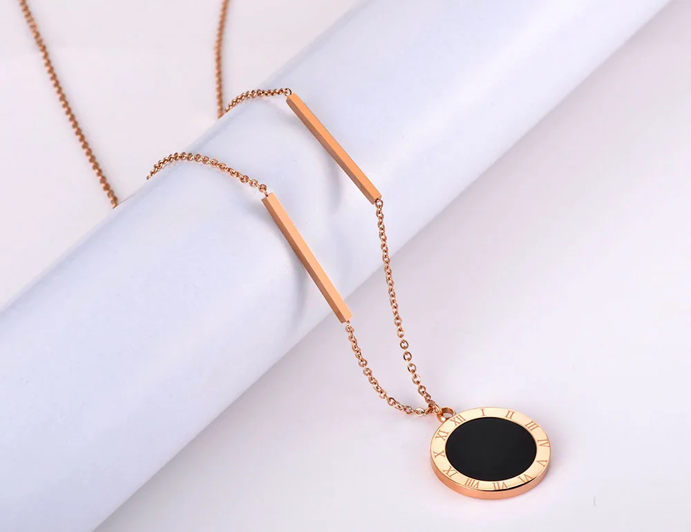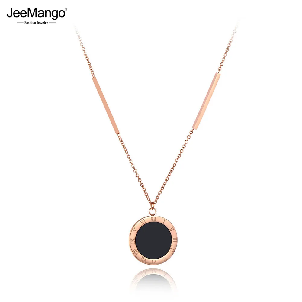 Длинное ожерелье JeeMango JN19165 из нержавеющей стали с черной акриловой подвеской с римскими цифрами для женщин