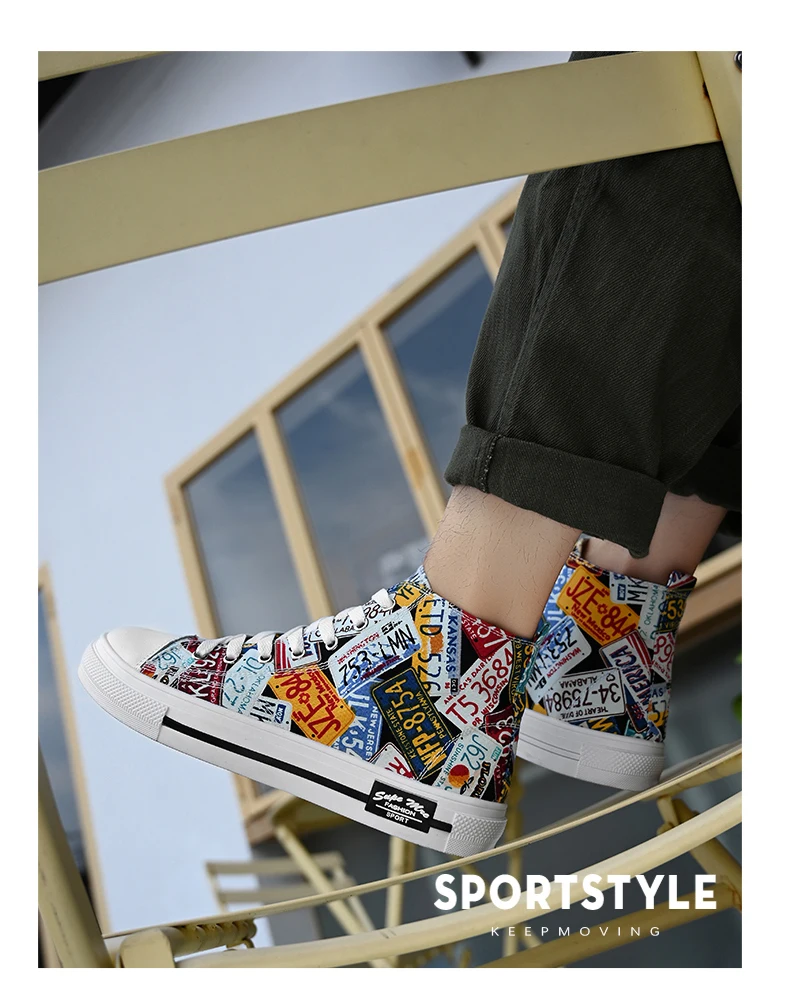 Кеды высокие мужскиеженские с принтом, Вулканизированная подошва, граффити, классические брендовые кроссовки для скейтбординга, повседневная обувь, 2021
