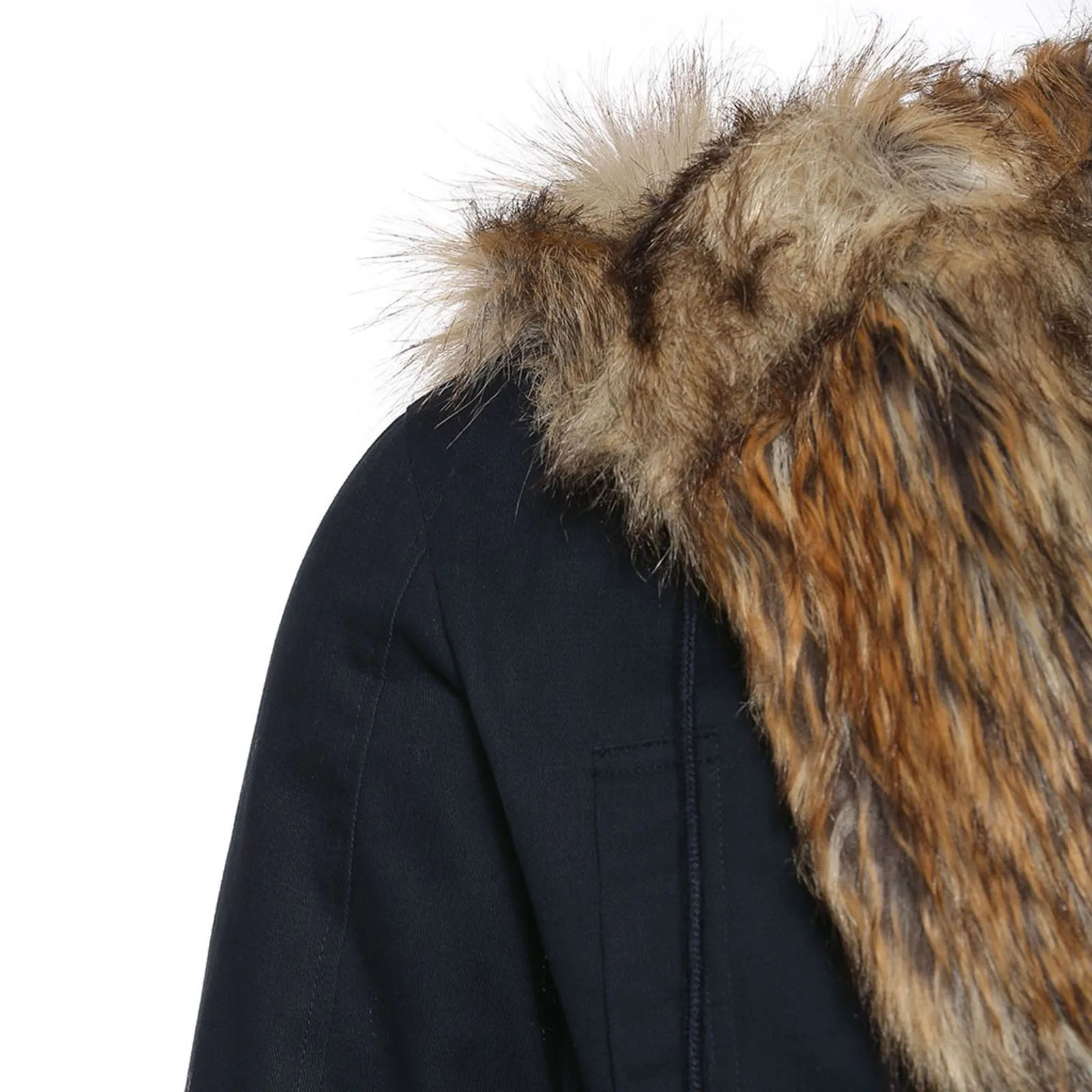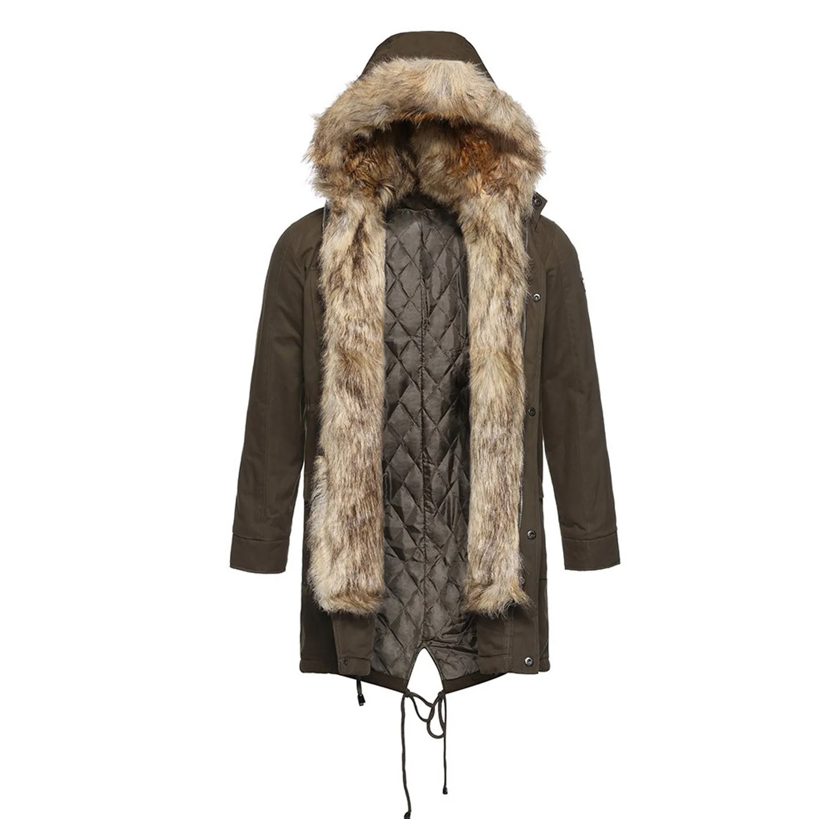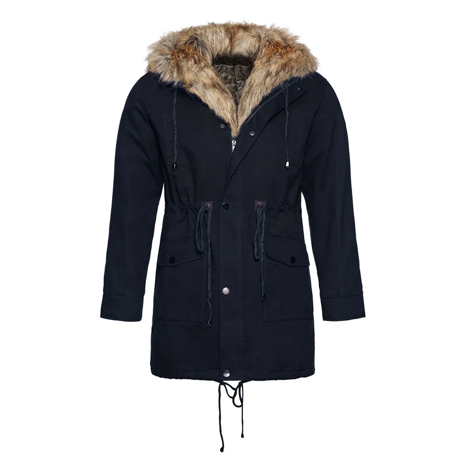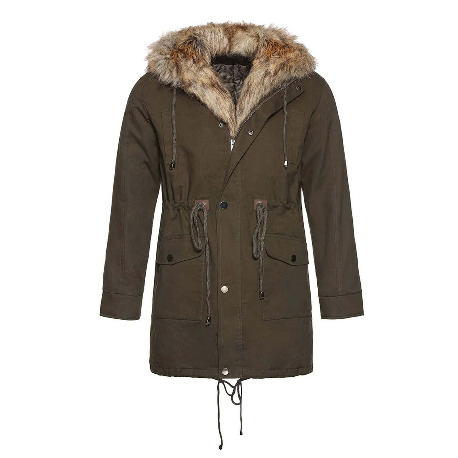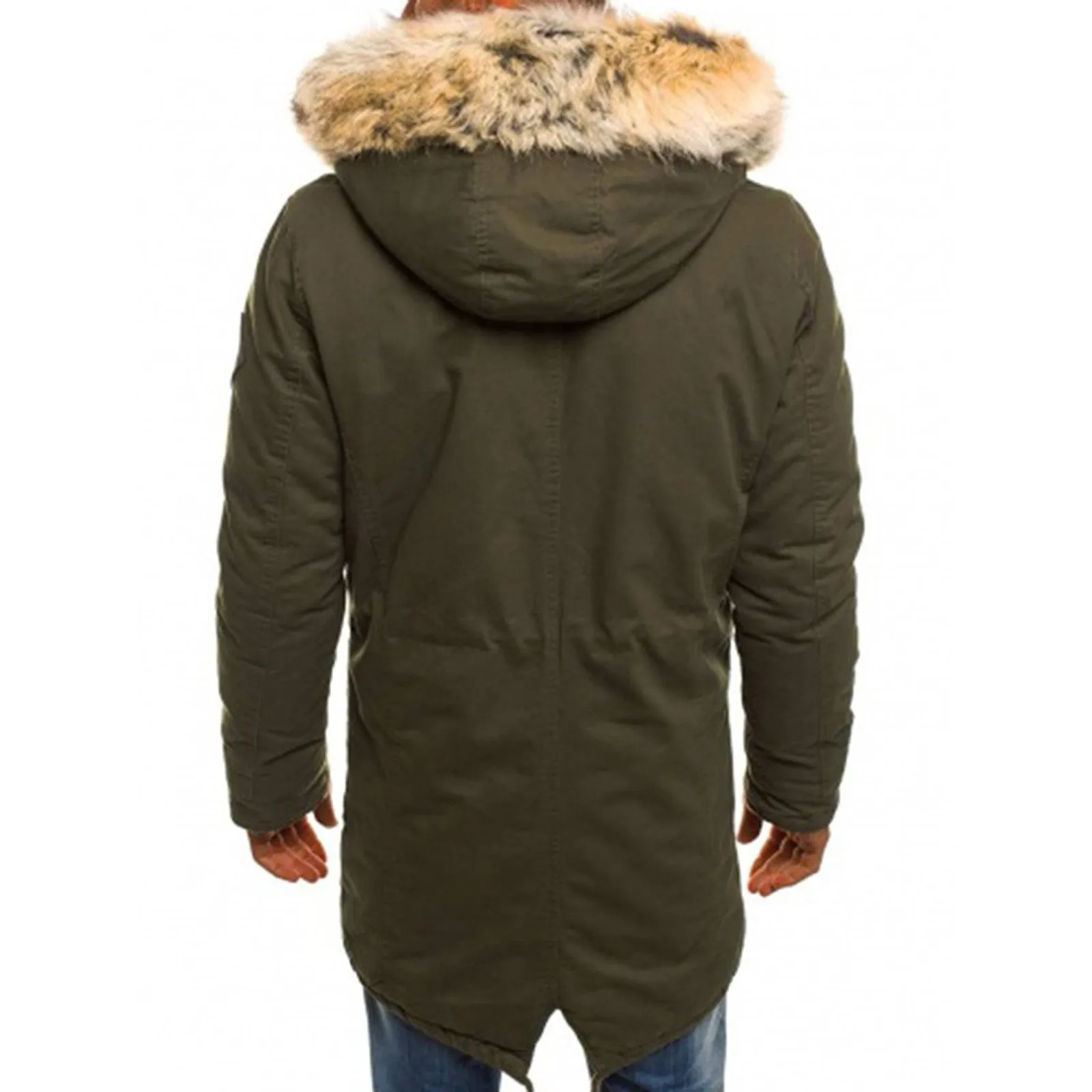 Мужская зимняя куртка на молнии с меховым воротником и длинным рукавом