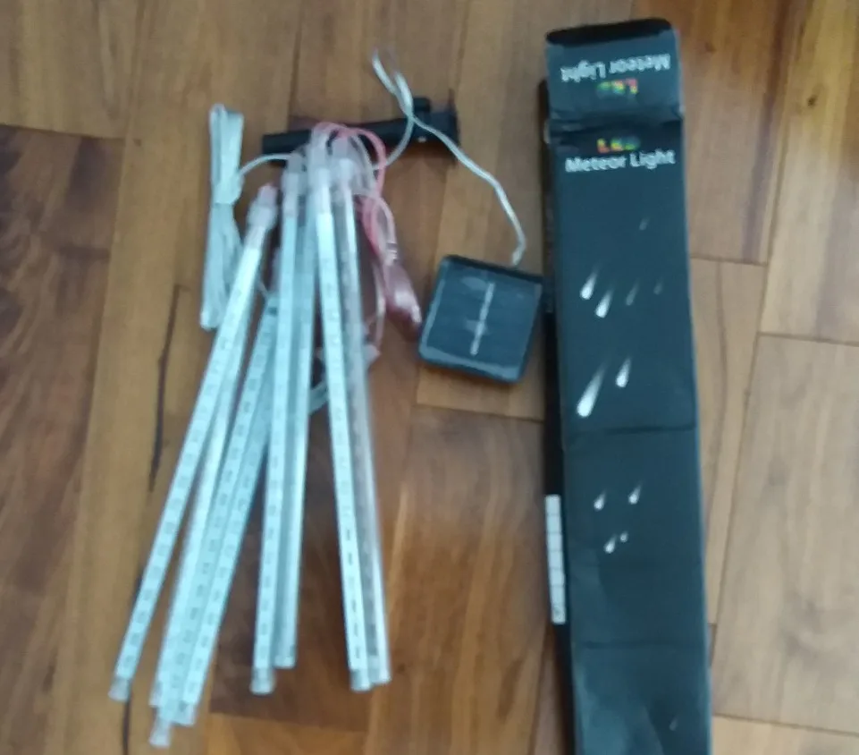 llegaron a tiempo. (solo un pequeño defecto una varilla no se enciende completamente. pero no se nota.)estas luces son buenísimas incluso aunque sean solar la placa la tengo cubierta con plástico transparente por la lluvia y siguen funcionando y cargando estupendamente .buen producto son potente de luz.y dura toda la noche encendidasñ
