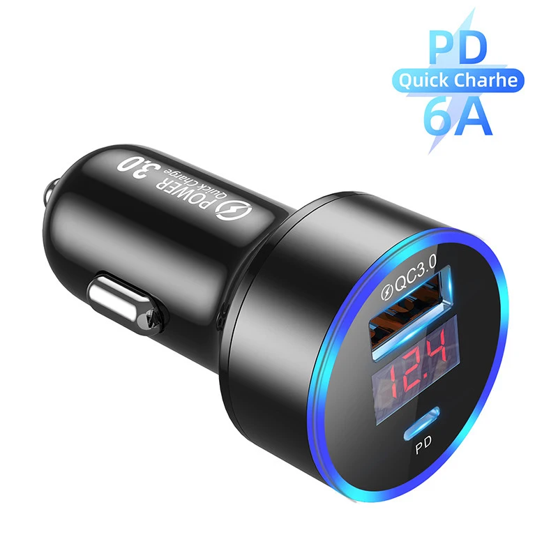 Feature 2QC3.0 Dual USB Car Charger USB C P D3.0 Type C Type-c USB Car Charger