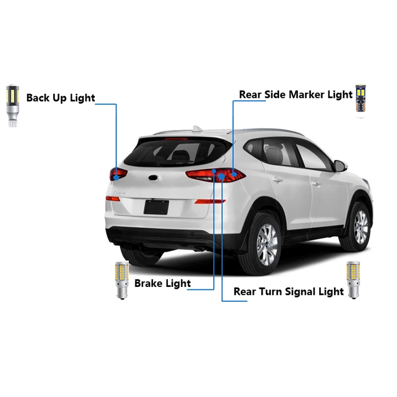 Автомобильные светодиодные лампы Canbus, для Hyundai Tucson, 2019, 2020, задний габаритный фонарь + задний фонарь + светильник поворота