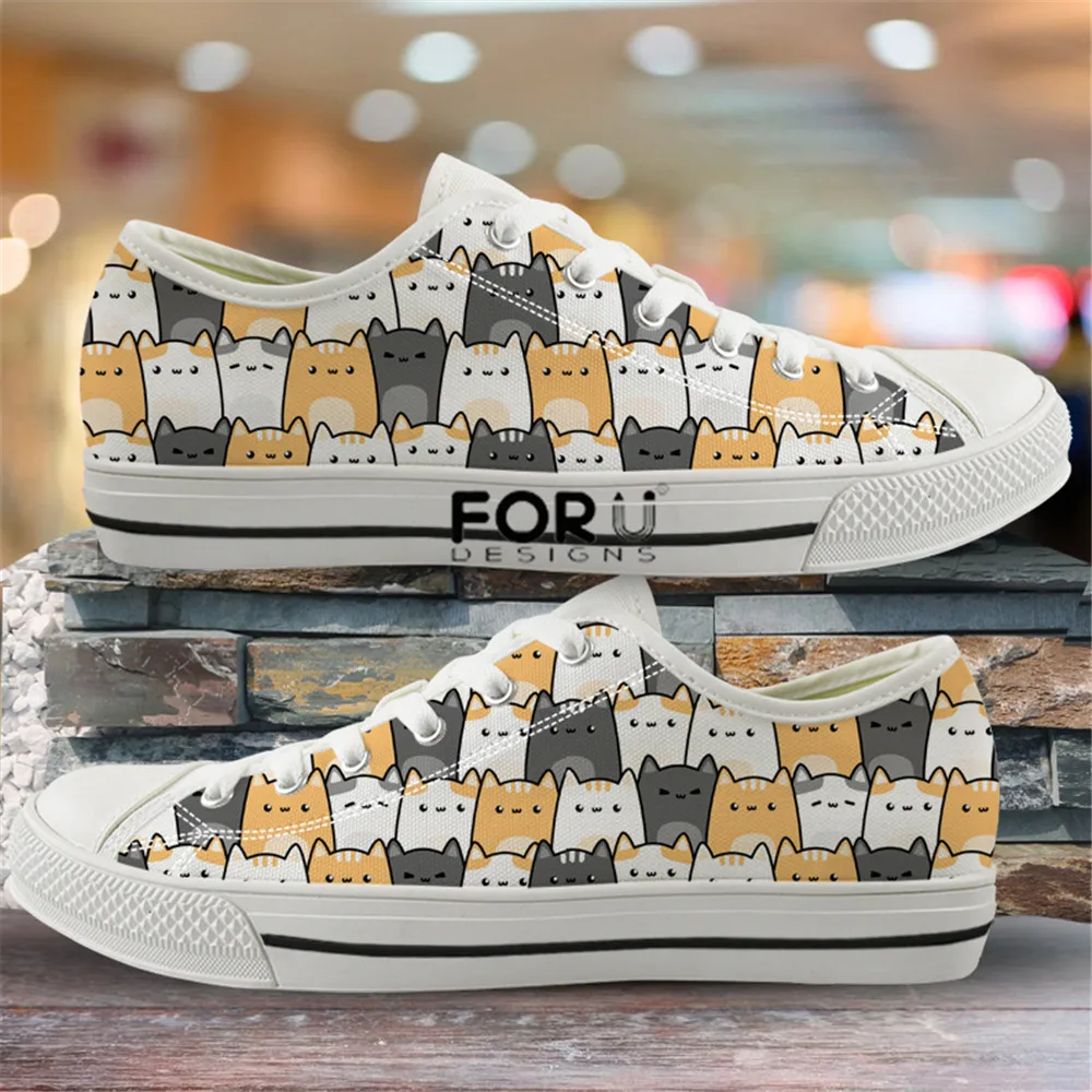 Кеды FORUDESIGNS для женщин, Вулканизированная плоская подошва, с мультяшным принтом кошки, повседневные кроссовки, плоская подошва