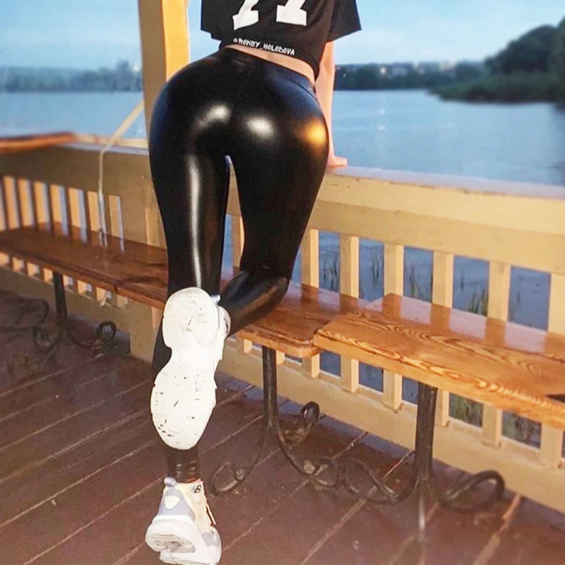 Женские эластичные леггинсы из ПУ кожи, черные леггинсы с эффектом ...