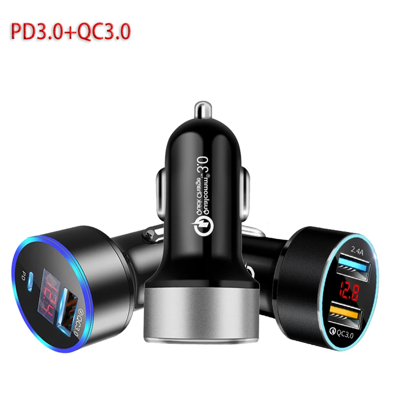 Feature 2QC3.0 Dual USB Car Charger USB C P D3.0 Type C Type-c USB Car Charger