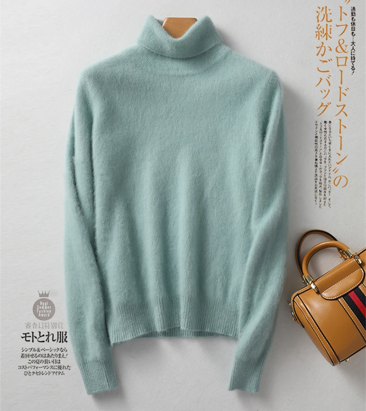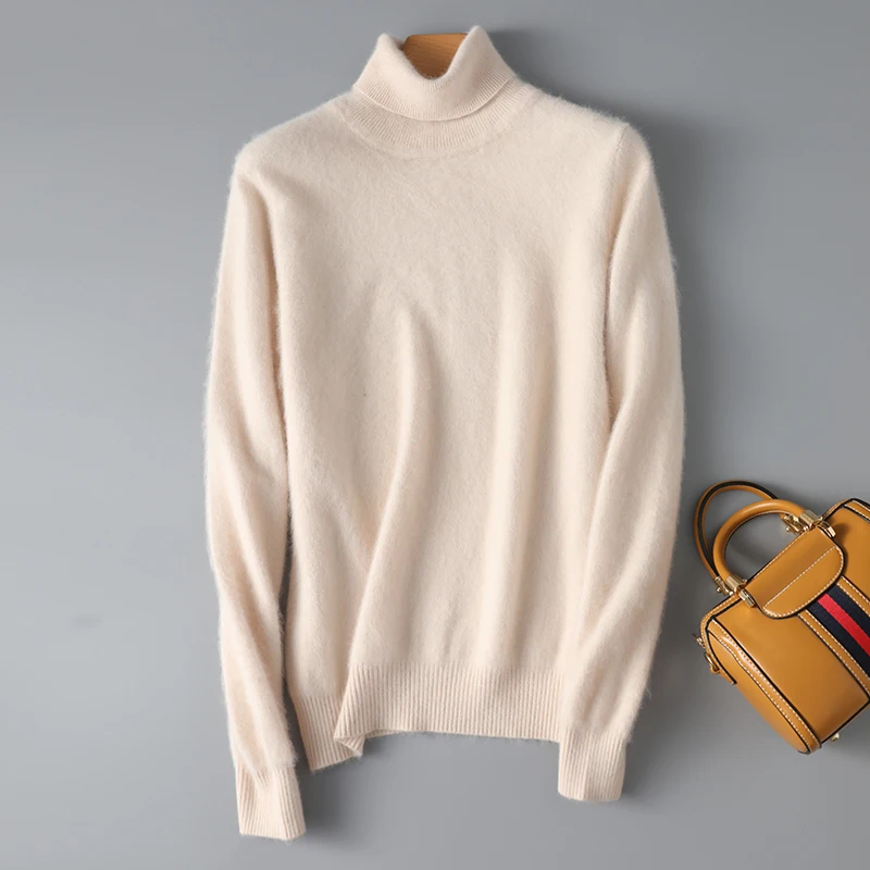 100% норковый кашемировый женский свитер с высоким воротником 2022 осенне-зимняя теплая одежда джемпер женский пуловер трикотажный халат женский зимний