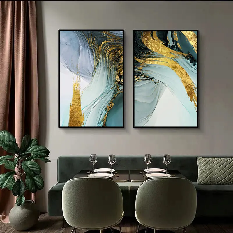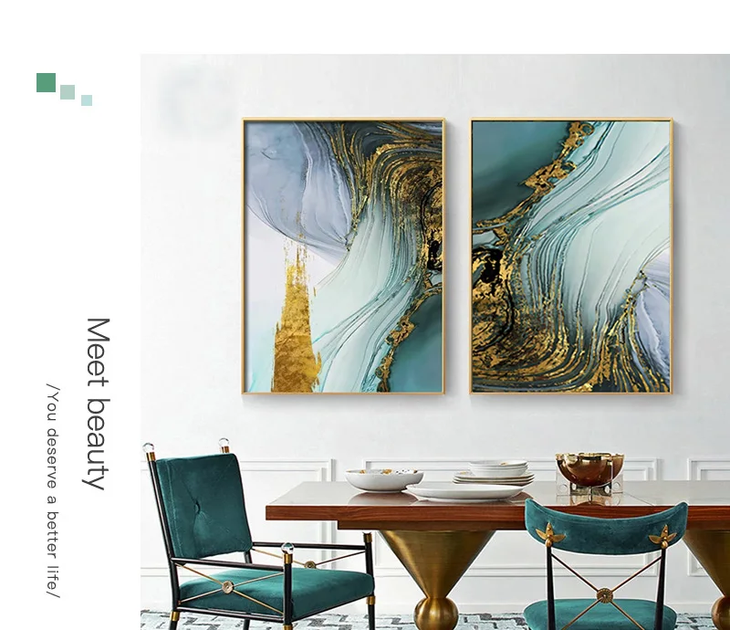 Настенная картина Современная абстракция синяя Мрамор золото Фольга голубой цвет, Картина на холсте для Гостиная Плакаты для спальни принты домашний декор