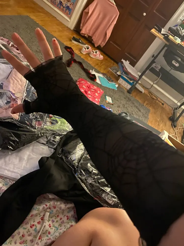 Мне очень нравятся эти перчатки! Они такие милые, и вы можете вытянуть их через локоть или оставить их немного короче, основываясь на ваших предпочтениях. Они выглядят точно так же, как на картинке, и изображение паутины выглядит потрясающе! Также очень хорошее качество по цене.