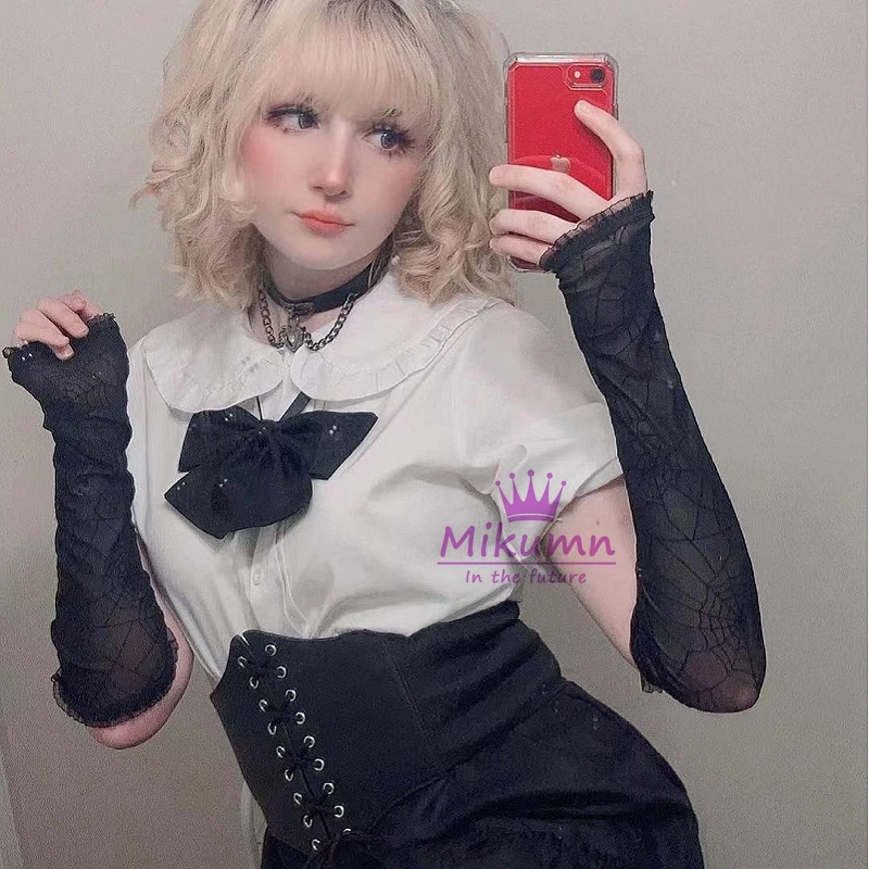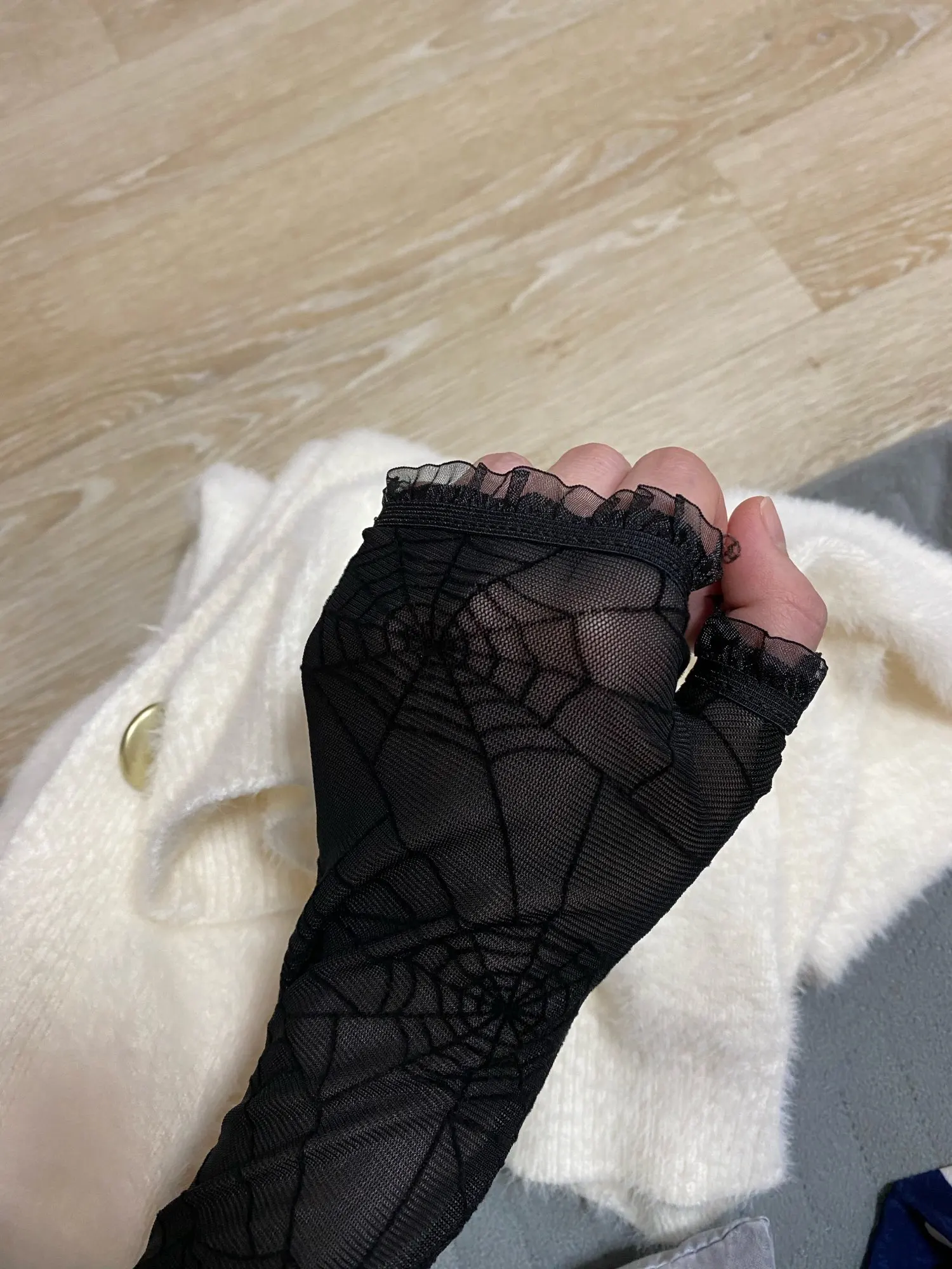 Перчатки женские кружевные в стиле Харадзюку, черные, сетчатые, без пальцев, в готическом стиле