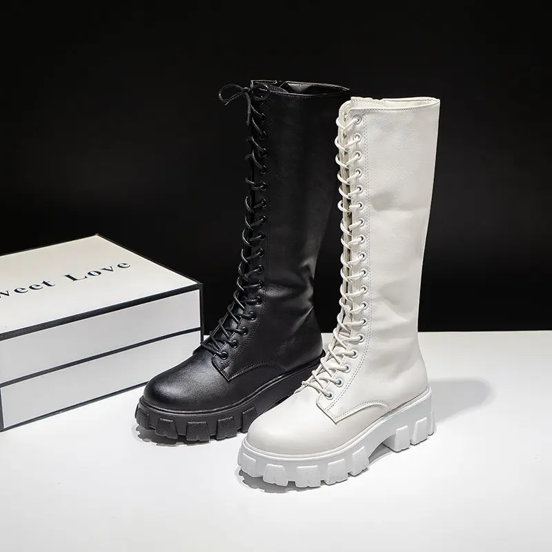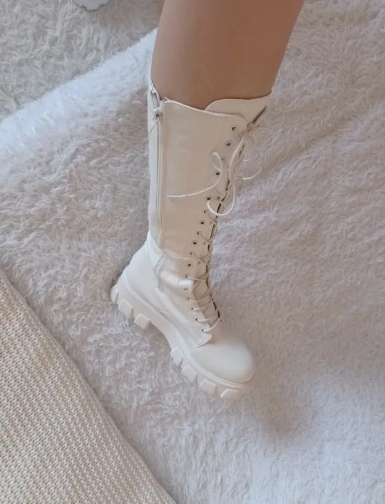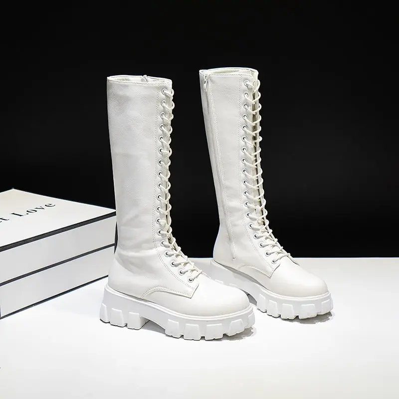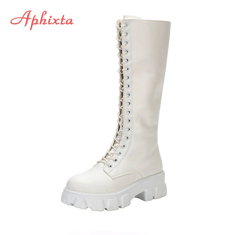 Aphixta 2022 зимняя обувь, женские длинные сапоги, белые сапоги до колена из искусственной кожи, женские модные сапоги на платформе со шнуровкой
