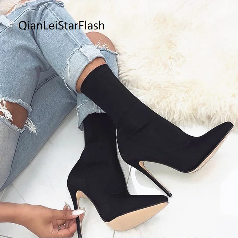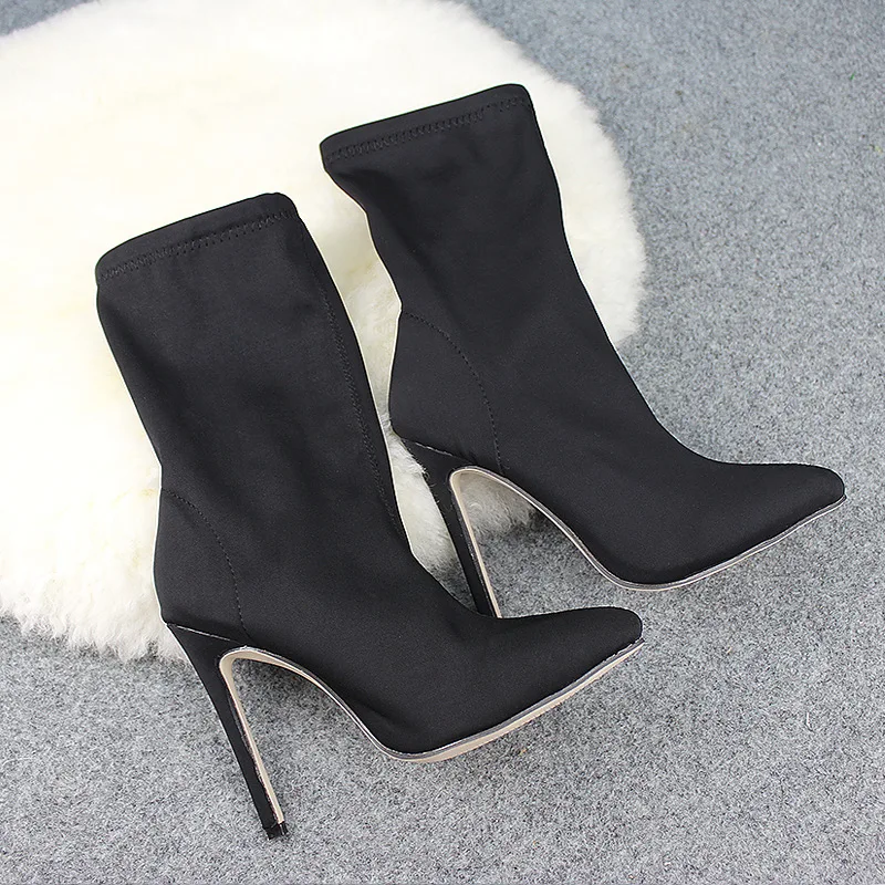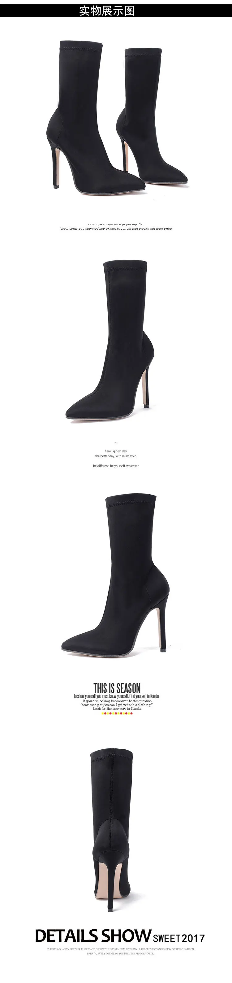 Женские ботинки средней длины, эластичная ткань, остроносые ботинки...