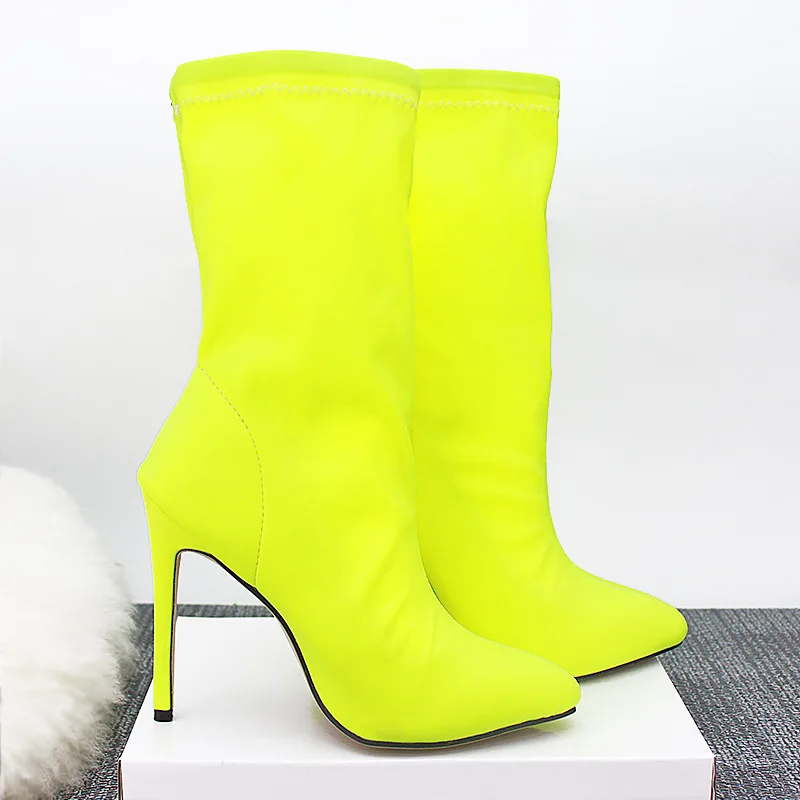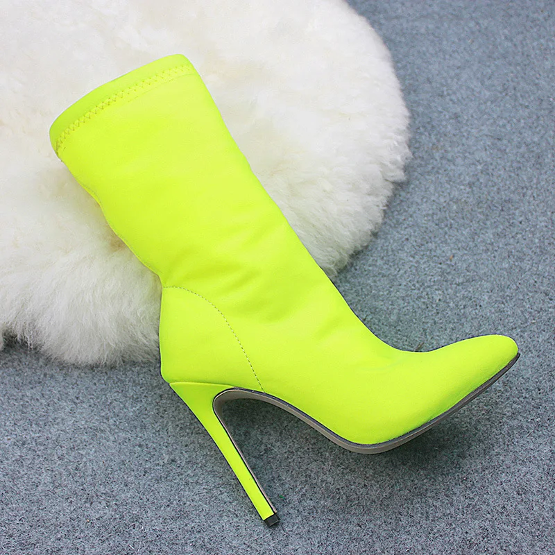 2020 шелковые женские Фетиш 11 см носки высокие Стрейчевые туфли на шпильках красные неоновые полусапожки Шарфы Большие размеры 43 туфли