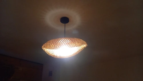 Милый. Как на фото. Поставляется со светодиодной лампой, которая имеет сильный, яркий белый свет. Одна звезда для небольшого размера навеса. Он не совсем покрывает потолочную коробку, оставляя зазор вокруг. Нужен потолочный медальон или какое-либо другое решение для покрытия зазора и по-прежнему использовать предоставленный навес