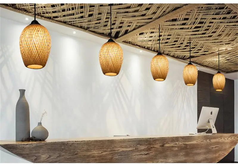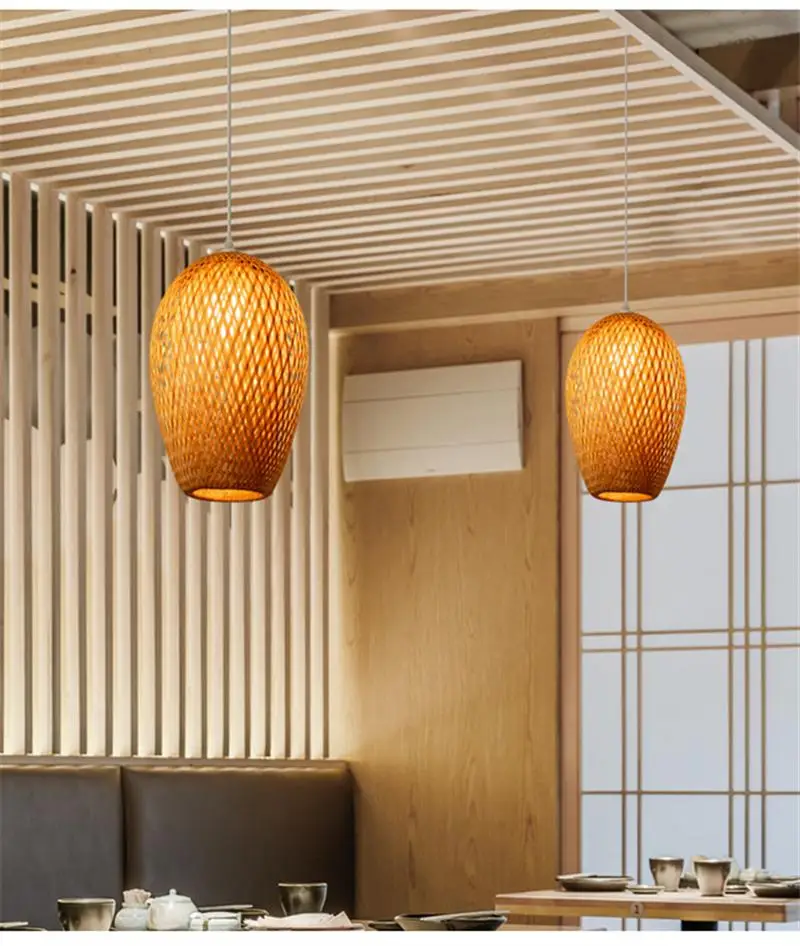 Бамбуковая плетеная люстра, китайский светильник дзен для чайной комнаты, гостиничный потолочный светильник, Подвесная лампа из бамбука для магазина