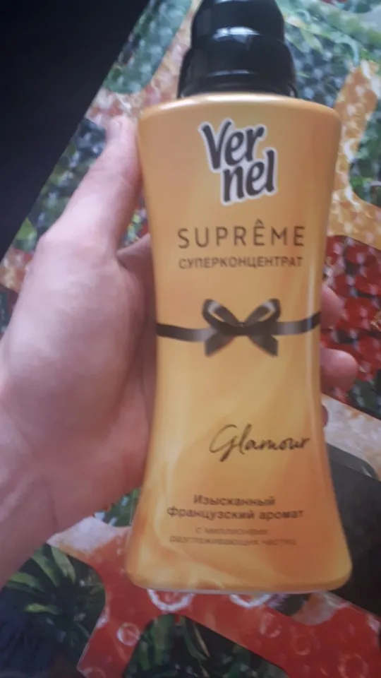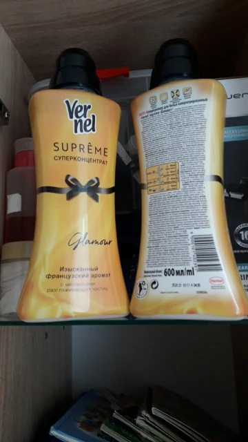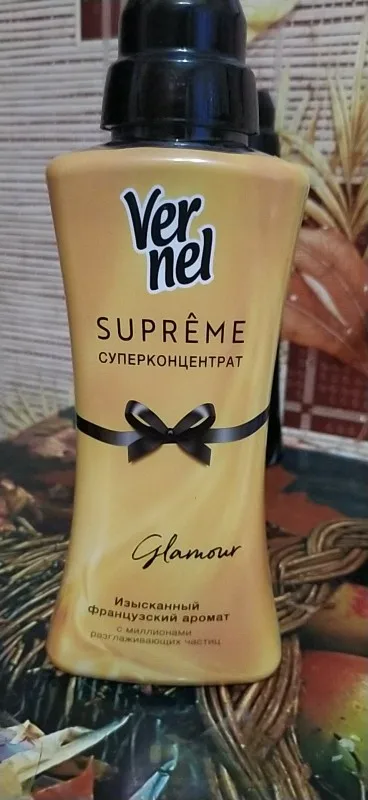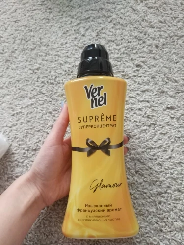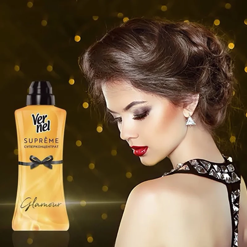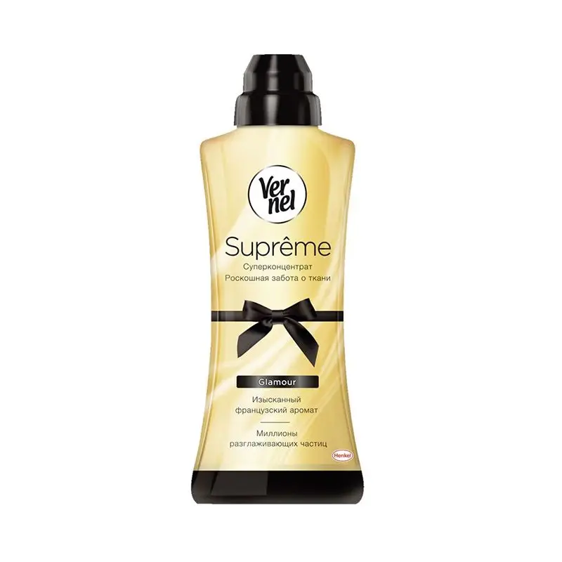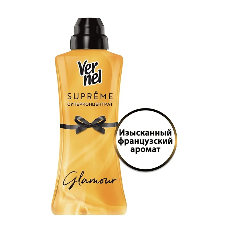 Концентрированный кондиционер для белья Vernel Супрэм Гламур 0,6 л, 24 стирки обладает тонким ароматом благородных древесных нот и глубокого мускуса. Кондиционер для стирки содержит миллионы разглаживающих частиц для роскошной мягкости ткани.Преимущества кондиционера для белья Vernel:- Средство Vernel имеет концентрированную формулу, обеспечивающую мягкость белью.- Кондиционер для стирки создан совместно с французскими парфюмерами. Благодаря специальным аромакапсулам в составе кондиционер дарит изысканное сочетание ароматов.- Кондиционер для стирки облегчает глажку и обладает антистатическим эффектом.Кондиционер Vernel идеально подходит для регулярного ухода за бельем, благодаря эффективности и простоте использования.- На одну стирку достаточно меньше половины колпачка средства Vernel.- Благодаря удобной крышке-дозатору вы всегда будете знать, сколько ополаскивателя для белья необходимо добавить.
