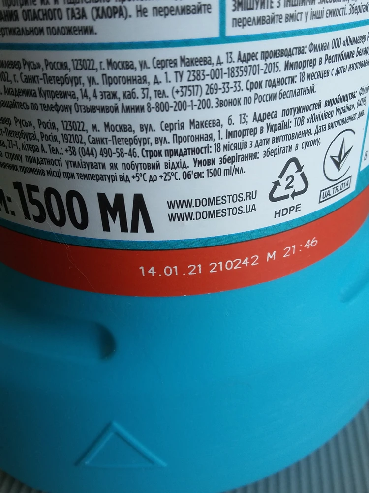 Заказала 4 февраля, пришло в Самару 6 февраля. Заказала 3 доместоса, один 0,5 литра и 2 по 1,5 литра. 0,5 литра стоил 108,71 рублей, а 1,5 литра 209,79 рублей. Плюс на 3 доместоса был купон на 100 рублей, так что вышло по халяве. Продавца рекомендую и товар тоже. Закажу ещё не раз. . Спасибо за то что есть такие магазины.