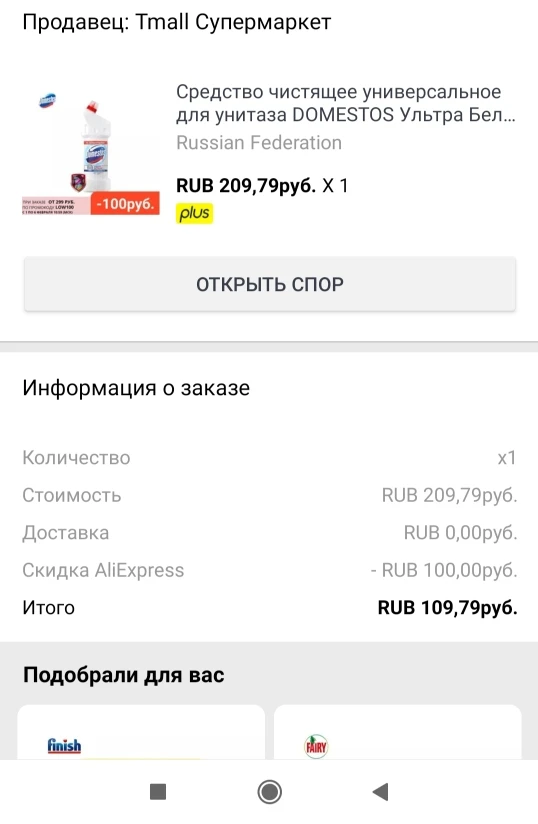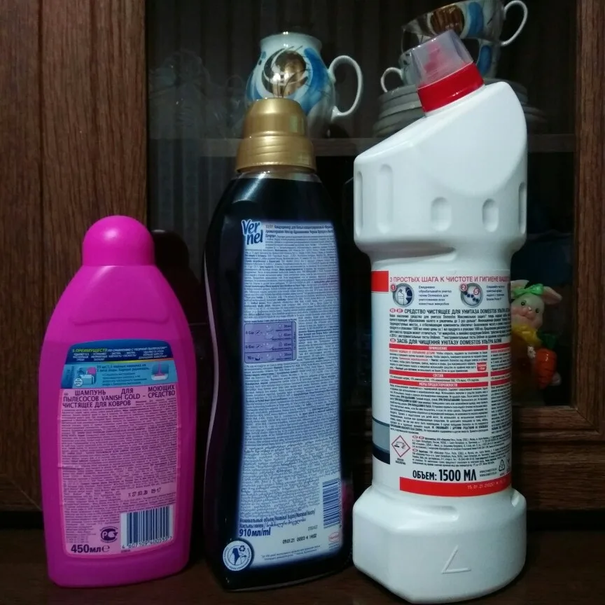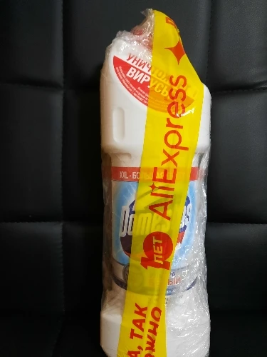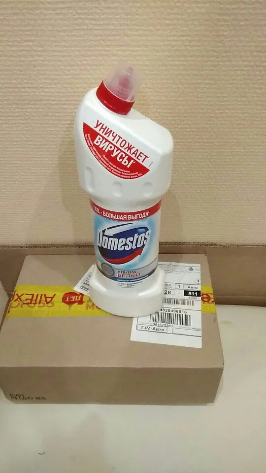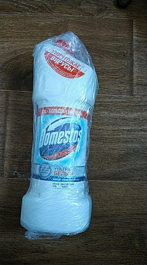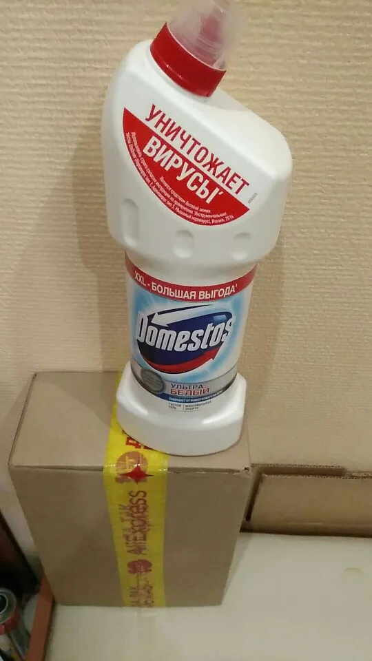 Из- за повреждения посылки в Москве протекла одна бутылка с доместосом и часть содержимого вылилась.Также вылились полностью моющие средства и все вместе испортили весь товар. Облезли этикетки и у всего заказа нетоварный вид, все товары заказа повреждены и им невозможно пользоваться. Кроме 1 бутылки, все на мусорке. Посылка в Москве переупаковывалась по причине нарушения целостности упаковки и течи. Составлен акт.Продавца рекомендую к праздникам. Продавец и его перевозчики супер.