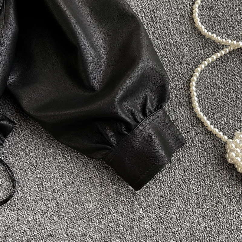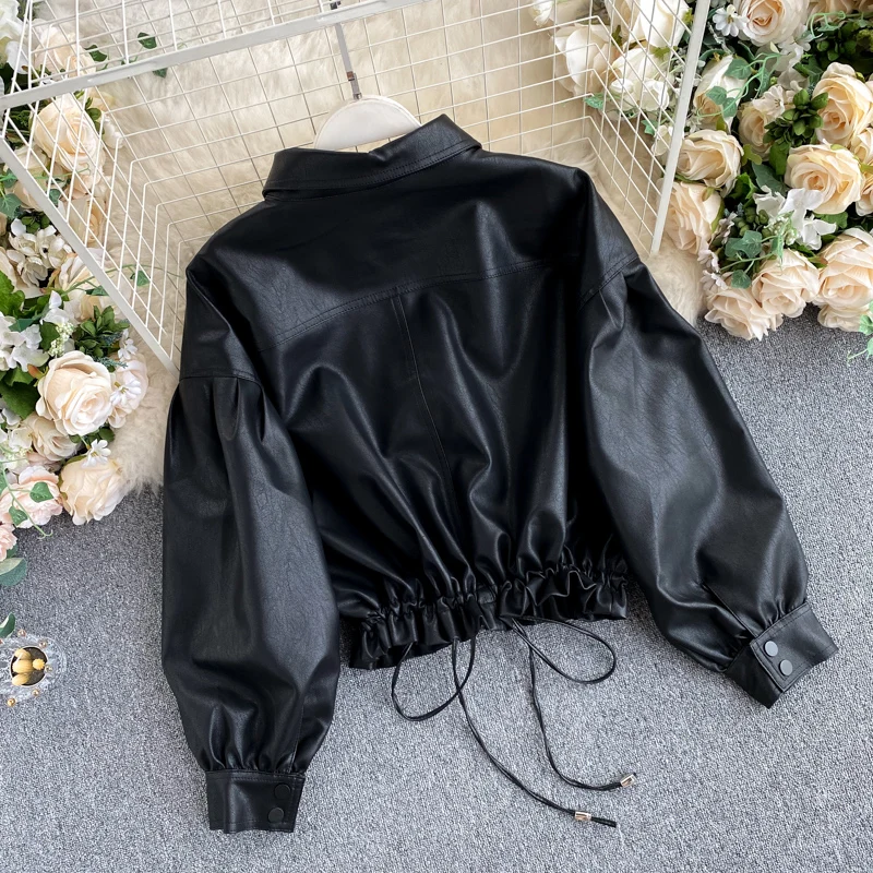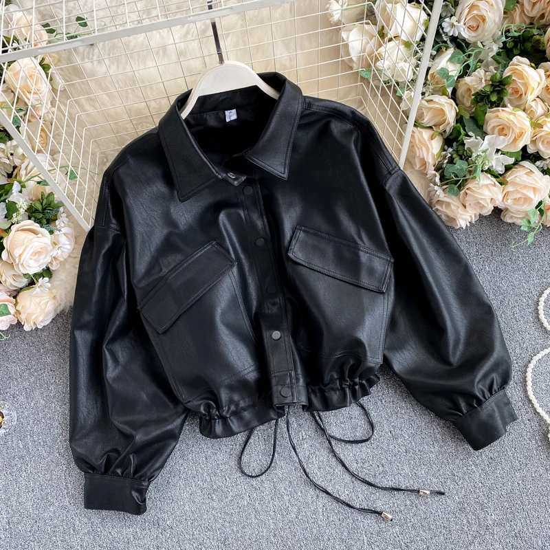 Женская короткая куртка ZQLZ, винтажная куртка из искусственной кожи, черного цвета, в стиле панк, свободная, однобортная, 2020