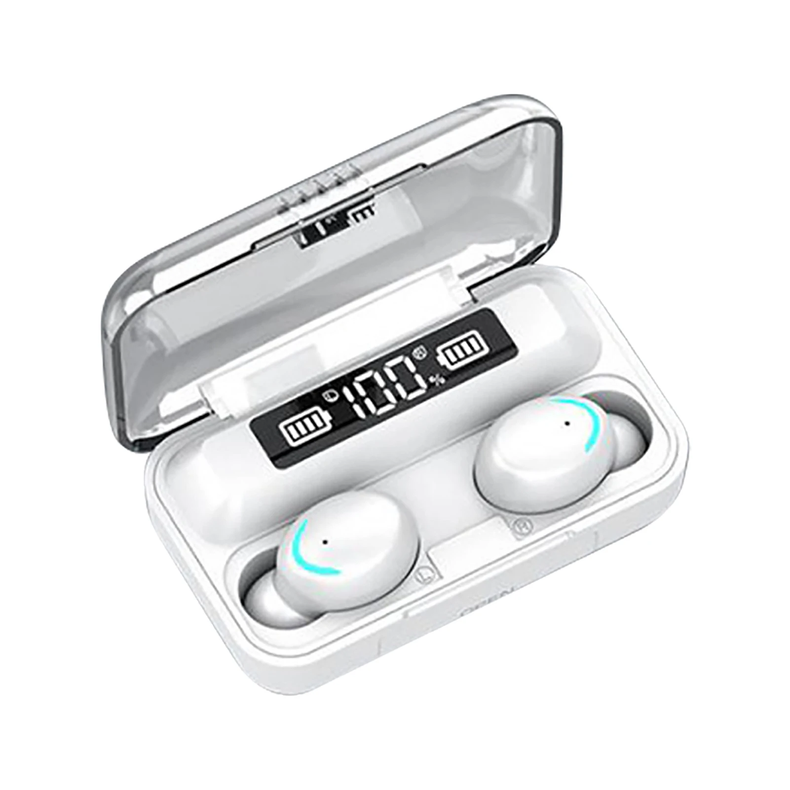 Беспроводные Bluetooth наушники V5.0 F9-5C TWS с сенсорным управлением, стерео спортивные наушники, наушники с шумоподавлением Характеристики: Наушники имеют чип Bluetooth 5,0, который имеет быстрое и стабильное соединение. С умным сенсорным управлением, удобно использовать. Он встроен в активное шумоподавление IC, обеспечивая HD телефонный звонок. Вы можете использовать один или два наушника с HiFi стереозвуком. Название товара: беспроводные наушники Материал: АБС-пластик Модель: F9-5C Версия Bluetooth: 5,0 Протоколы: HFP 1,7/HSP 1,2/A2DP 1/AVRCP1.6/SPP 1,2/PBAP 1,0 Напряжение зарядки: 5 В постоянного тока Чувствительность микрофона: -42 дБ Рабочая температура: -10-50 градусов Цельсия Частотный диапазон отклика: 20-20000 Гц Чувствительность: 120 дБ +/- 5 дБ Расстояние передачи: 10 м Время зарядки: около 1 часа Общее время работы: около 220 часов (с полностью заряженной зарядной коробкой) Емкость аккумулятора наушников: 50 мА · ч (в комплекте) Емкость зарядного устройства: 2000 мАч (в комплекте) Характеристики: перезаряжаемый, портативный, умный заряд Зарядным устройством Размеры: 14 см x 10 см x 4 см/5,51 "x 3,94" x 1,57 "(прибл.) Примечания: Благодаря светильник и экрана Цвет Товара может быть s светильник ly отличается из-за характеристик монитора компьютера. Возможны незначительные отклонения в размерах из-за различных измерений вручную. Посылка включает в себя: Беспроводные наушники-2 шт. 6 ушных колпачков 1 x Зарядное устройство 1 x зарядный кабель 1 x Руководство пользователя