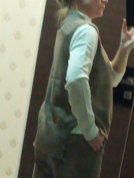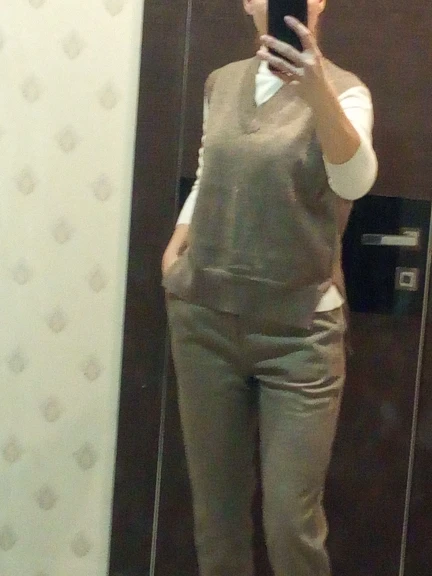 Жилетка отличная, мягкая на ощупь, прекрасно сшита. Все ровно, ничего не торчит. Цвет приглушённо-коричневый. Размер one size: в не растянутом виде ог-50, плечи-40, длина спереди-57, сзади-65. Есть разрезы по бокам, хорошо тянется. На меня ог-90, плечи -39, талия -75, рост -168 села прекрасно. Доставка в пункт выдачи заняла ровно 14 дней. Очень она мне понравилась.