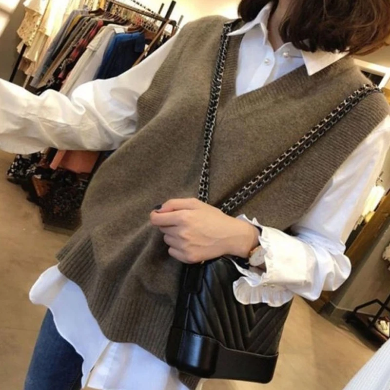 Женский винтажный пуловер с V-образным вырезом, осенне-зимний трикотажный свитер-жилет без рукавов, теплый повседневный Свитер оверсайз, 12229