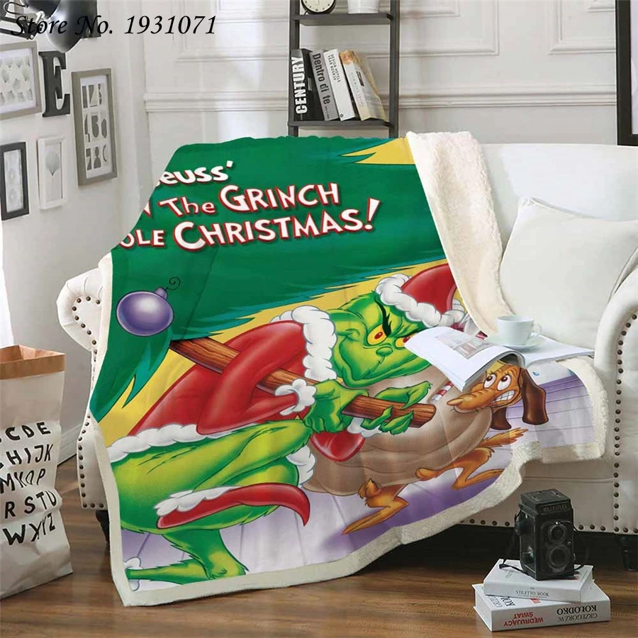 Рождественский палантин Grinch, флисовое повседневное одеяло с 3D принтом для кровати, плотное одеяло, модное покрывало, покрывало Sherpa, одеяло для взрослых и детей