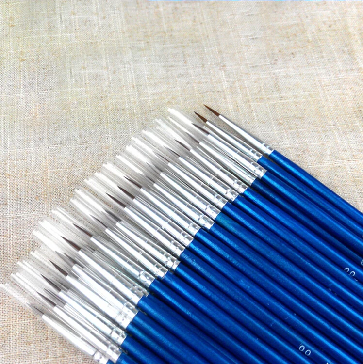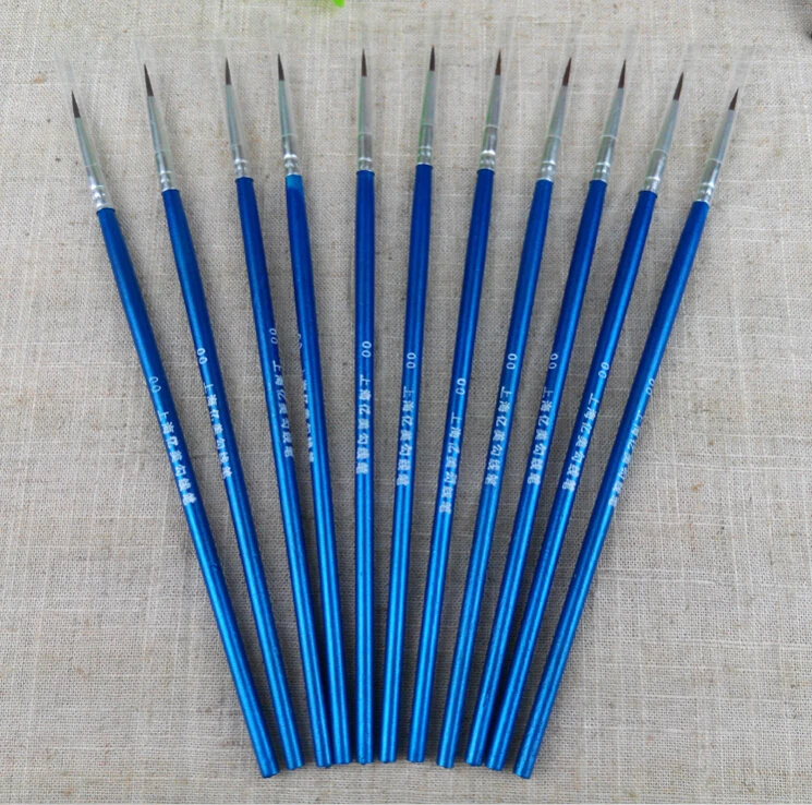 Оптовая продажа, 10 шт.лот #000000, нейлоновая кисть для рисования акриловыми акварельными красками, круглыми острыми кончиками, ручка для рисования