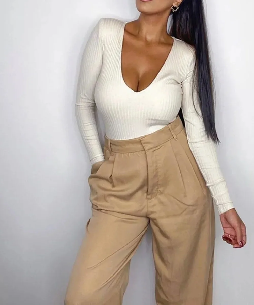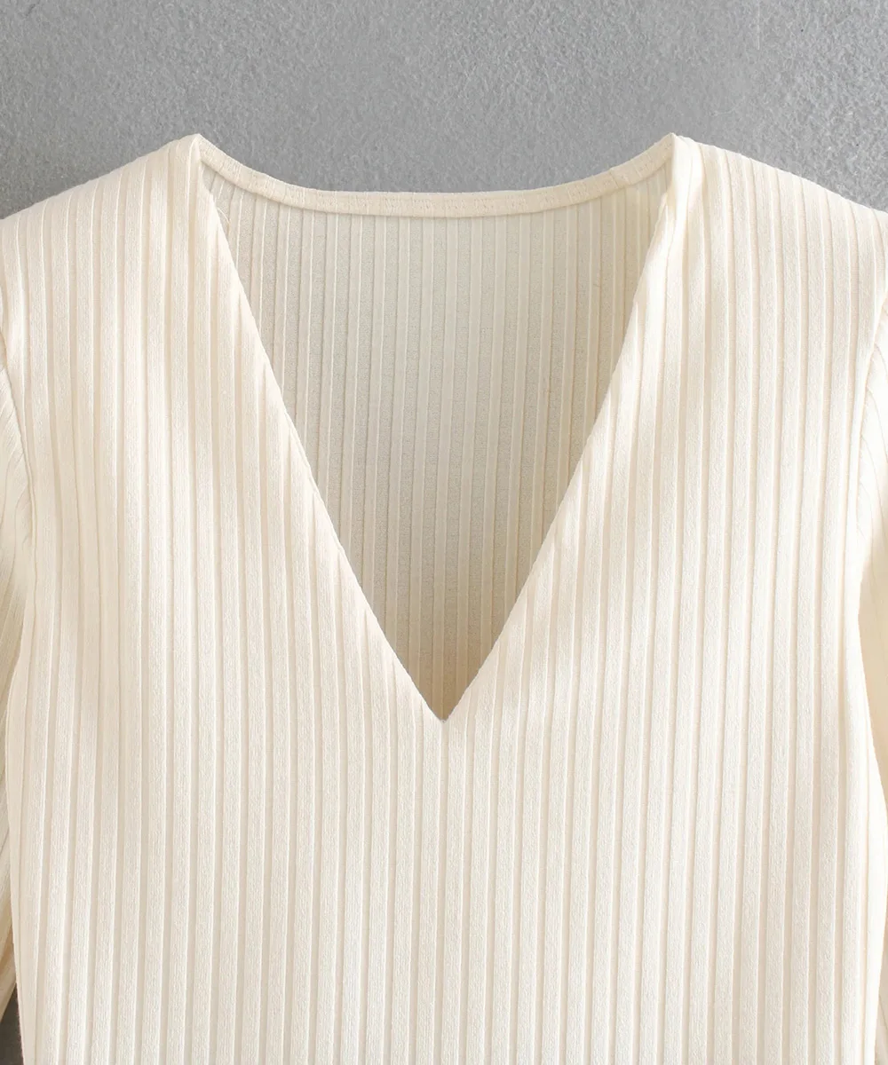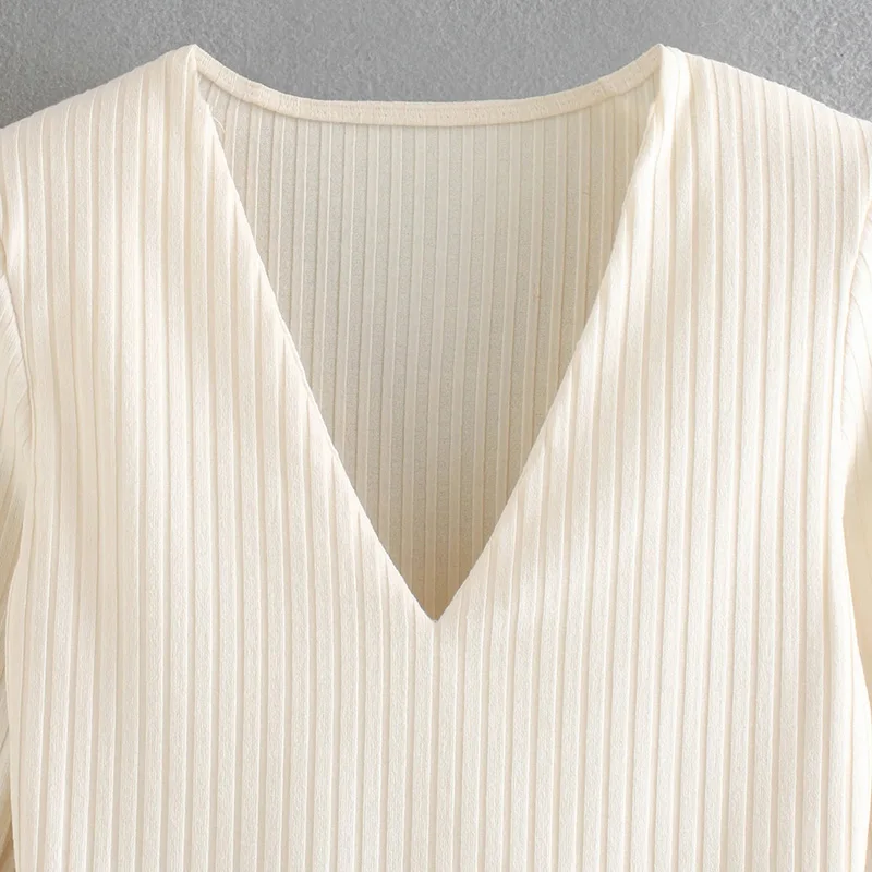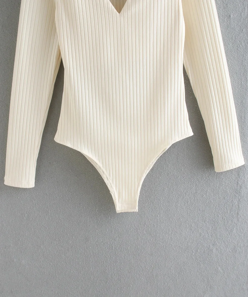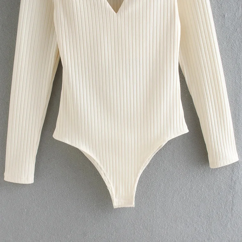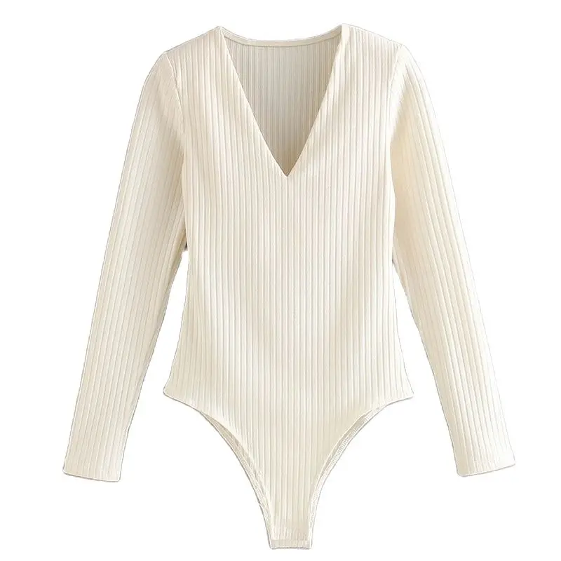 Новые летние Стиль Женская обувь в европейском и американском стиле Стиль пикантные эластичные свитер с треугольным вырезом и длинными рукавами, женский боди