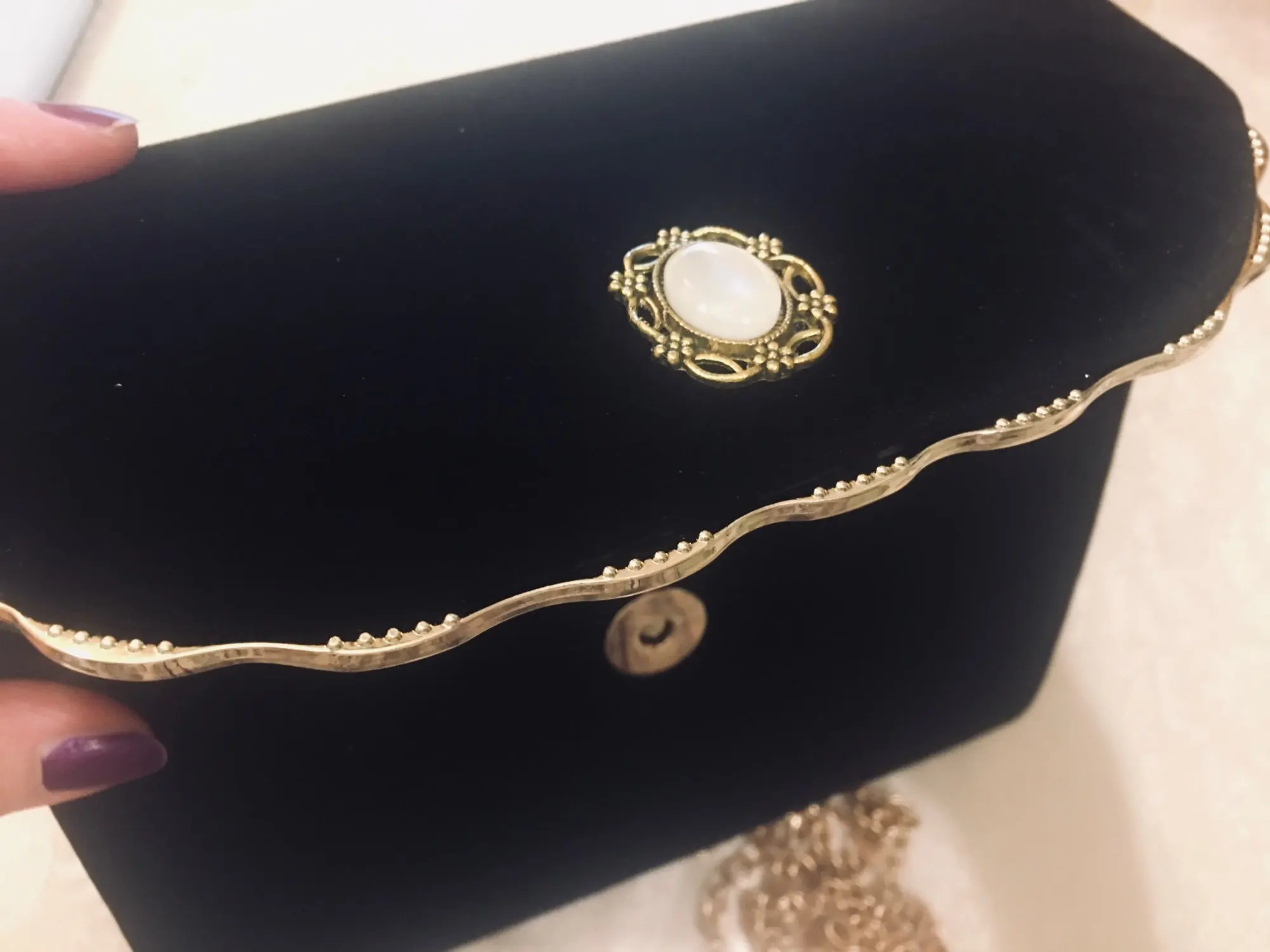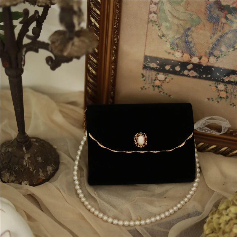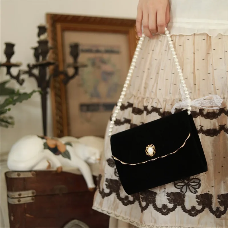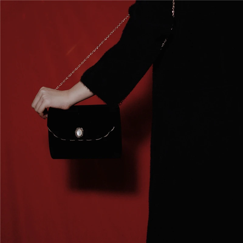 Бархатный клатч в стиле ретро для женщин, элегантный свадебный кошелек и элегантная вечерняя маленькая сумочка на плечо с жемчужной цепочкой, черный цвет, zd195.