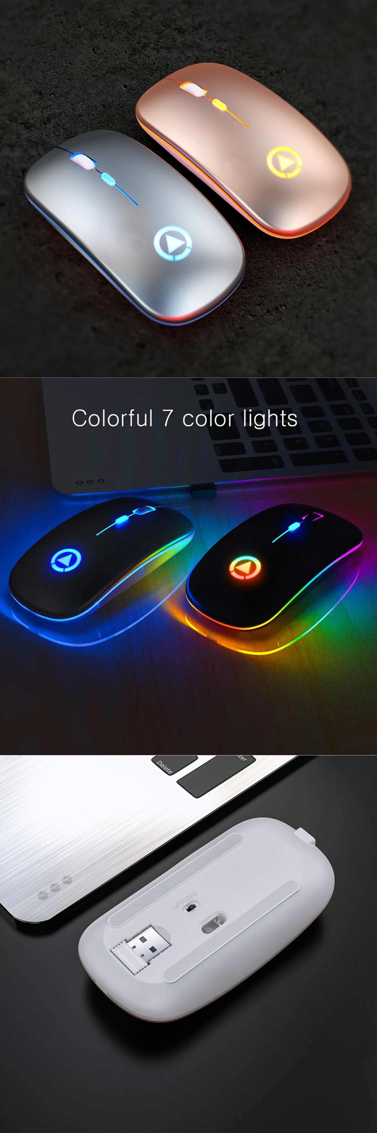 Перезаряжаемая беспроводная мышь с Цветной подсветкой, бесшумные Ко...