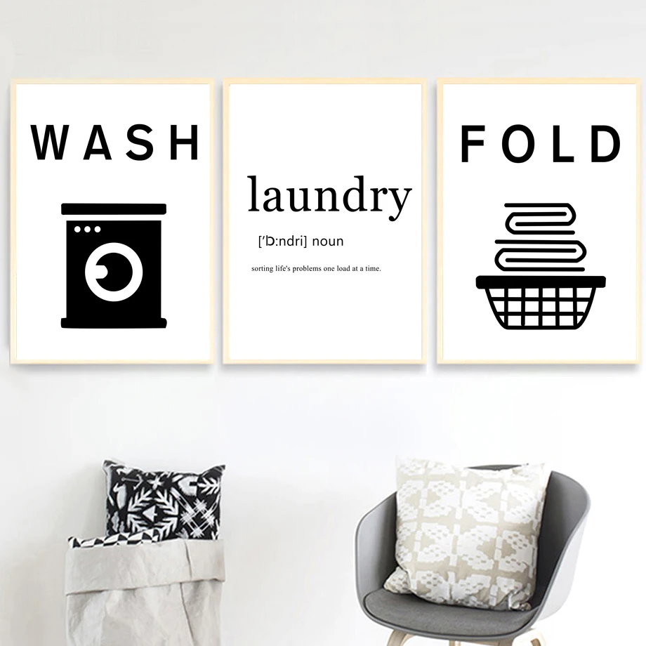 Рождество холст картины мытья сухой Сложите железа табличка с надписью прачечной черный, белый цвет Wall Art Nordic плакат от представленного на фотографии, так для Ванная комната Домашний декор