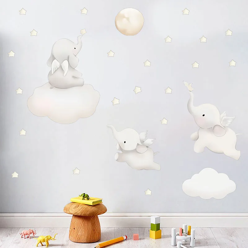 Мультфильм Маленький слон луна звезды настенные наклейки детская ко...