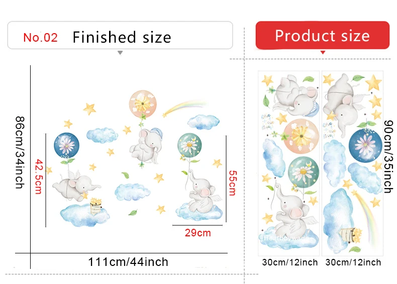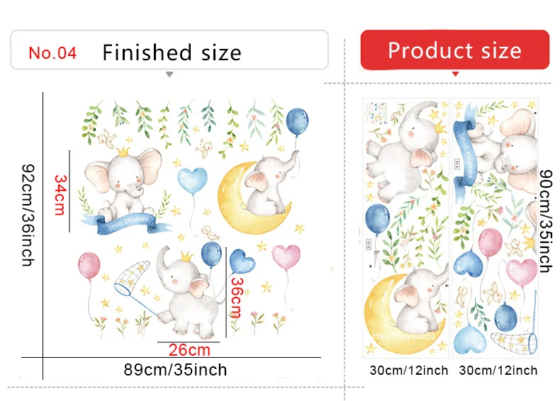 Наклейки на стену с изображением маленького слона воздушные шары ка...