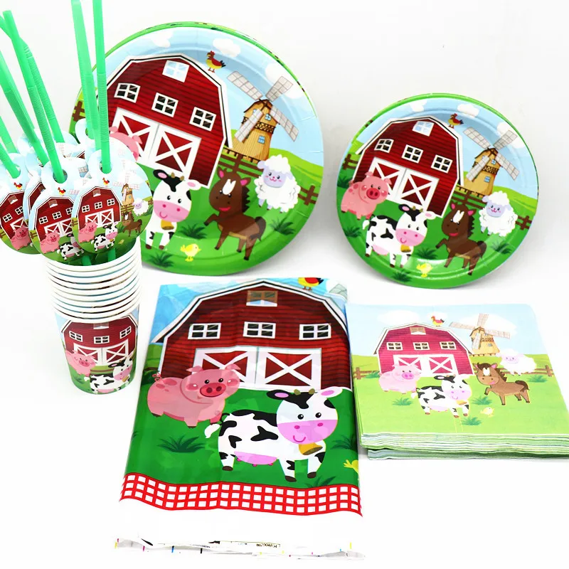 Декоративная посуда для фермы на день рождения, бумажный баннер, подвесная гирлянда, праздвечерние чный декор, принадлежности, Натяжной флаг, тема фермы, фольгированные шары