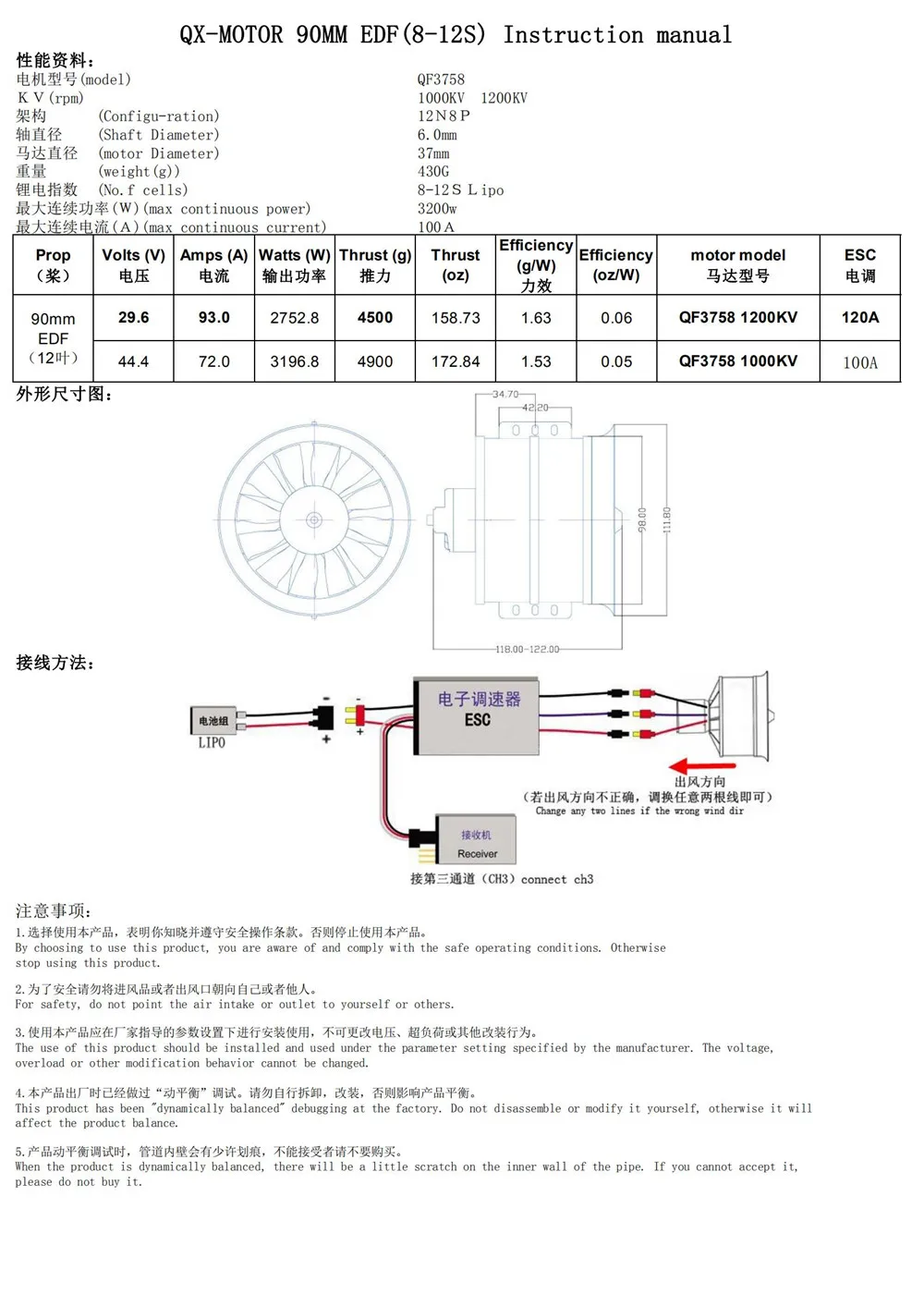 QX-MOTOR 90mm12 лопасти воздуховод вентилятор EDF блок с мотором 6S...