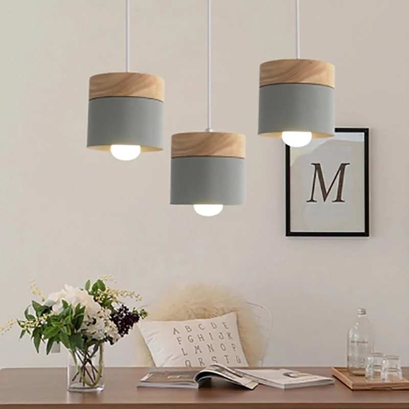 Nordic простой подвесной светильник Винтаж Макарон железо дерево подвесной светильник для спальни дома кафе ресторана другая спальня s подвесной светильник