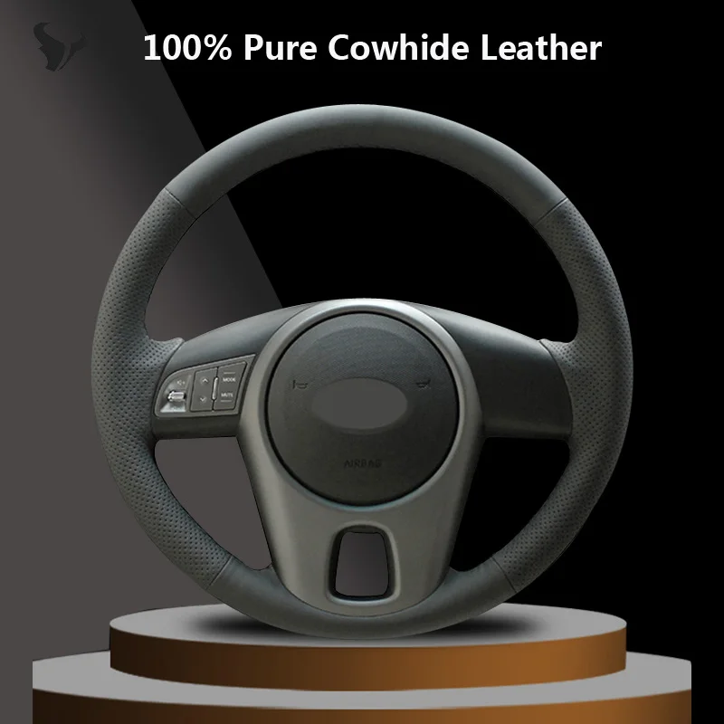 Прошитая вручную черная Оплетка на руль из натуральной кожи для Kia Forte Kia Soul Kia Rio 2009 2010 2011