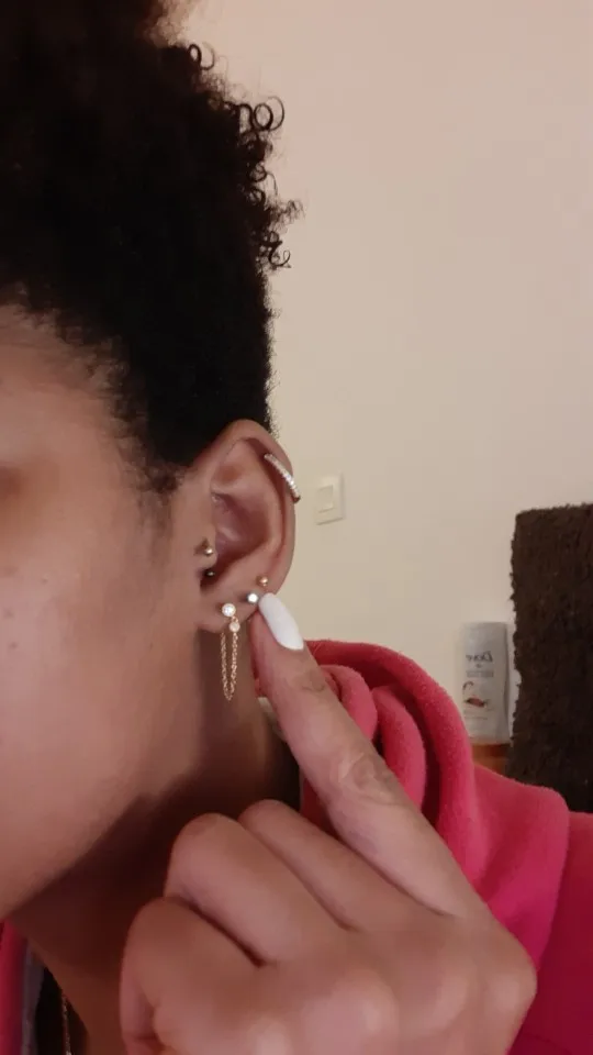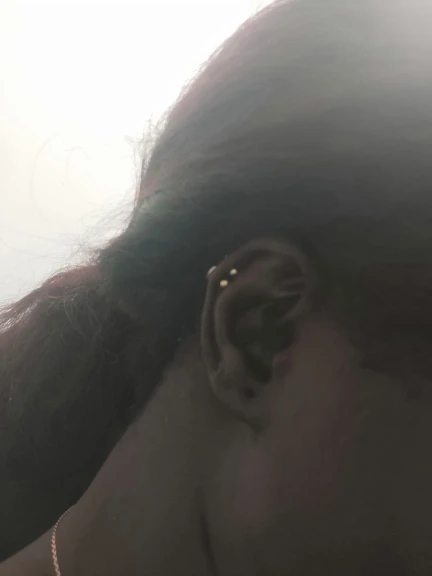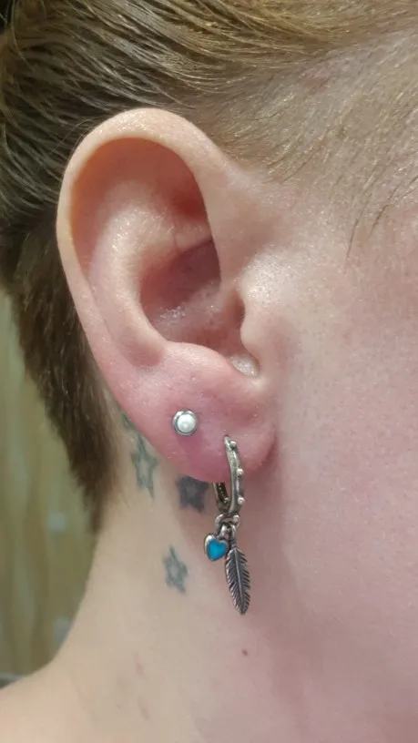 Пронзил винтом. Это действительно повредило, но теперь его вид чувствительный Не спите на ухо, которое вы пронзили Очистите пирсинг каждый день в слатводе или спирте Не меняйте пирсинг до тех пор, пока он не станет полностью здоровым Не скручивайте серьги, это останавливает процесс заживления