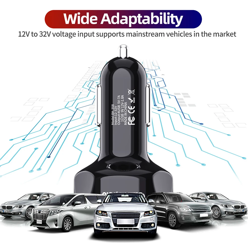 Автомобильное зарядное устройство с 4 USB-портами Quick Charge 3,0, Универсальное автомобильное мобильный телефон зарядное устройство 18 Вт для samsung s10, iphone 12, 11, 7