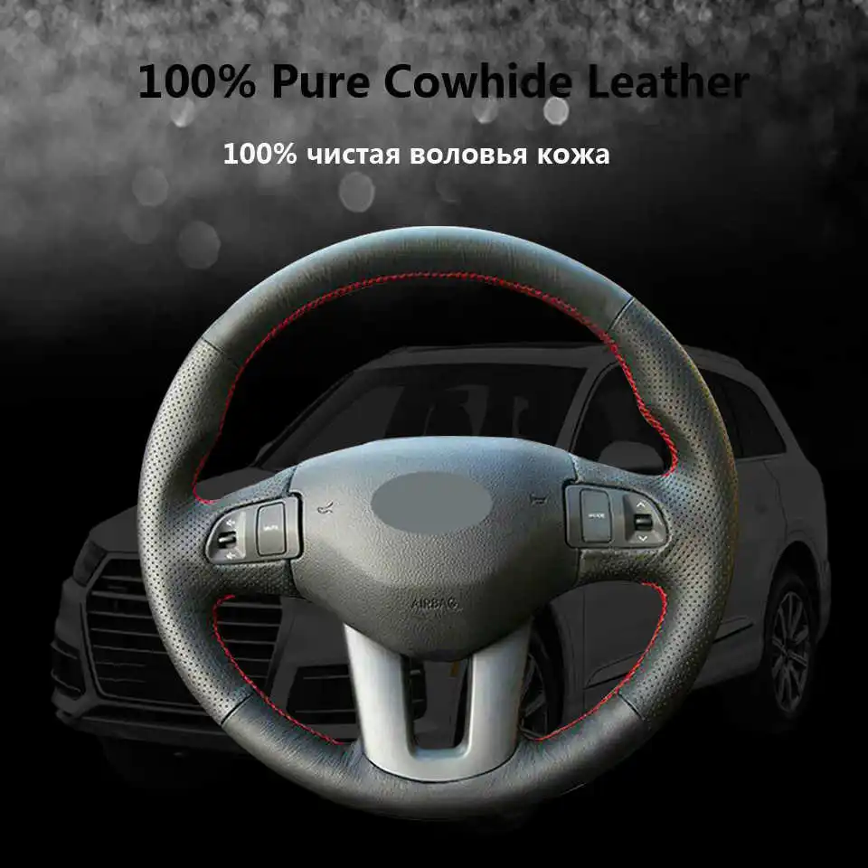 Черный чехол рулевого колеса автомобиля из натуральной кожи для Kia Sportage 3 2011 2012 2013 2014 Kia Ceed 2010