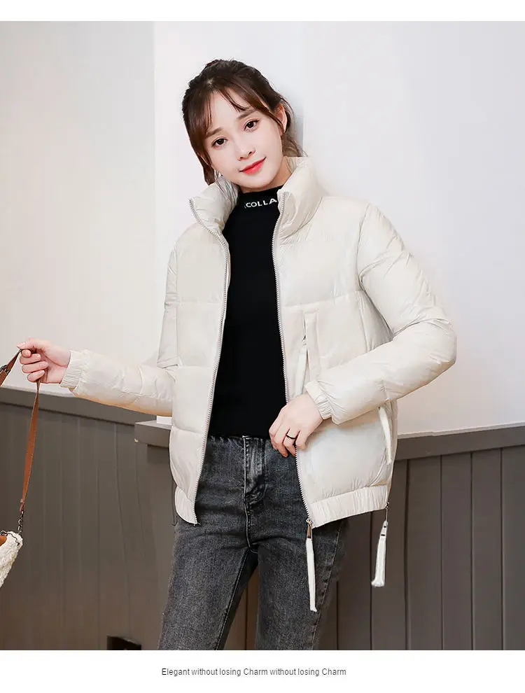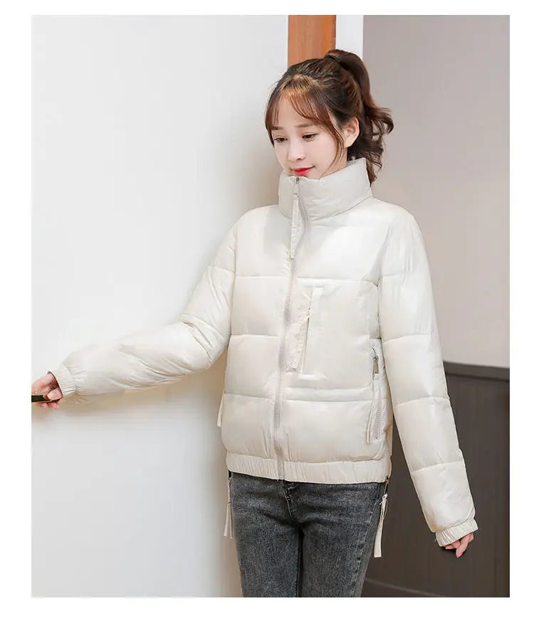 PEONFLY модная женская однотонная обувь черный, белый цвет свободные парки Толстые 2020 зима, на молнии, с карманами, с воротником-стойкой, женское теплое пальто куртка